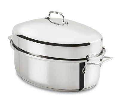 - The oval roaster’s high straight sides and large surface area accommodates larger cuts of meats while simultaneously containing juices.