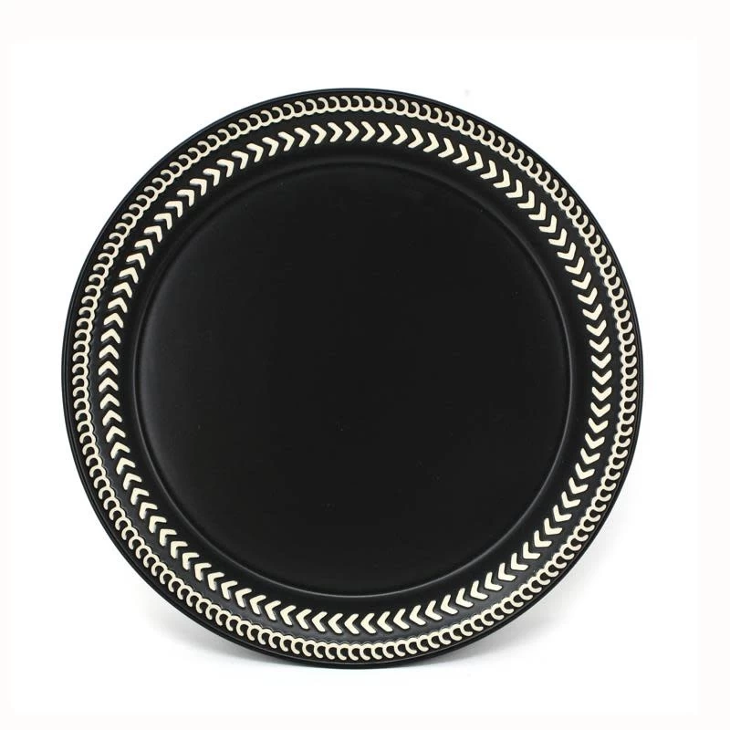 Inspired by traditional Indonesian batik art, this dinnerware collection uses geometric shapes in a classic black and white palette.