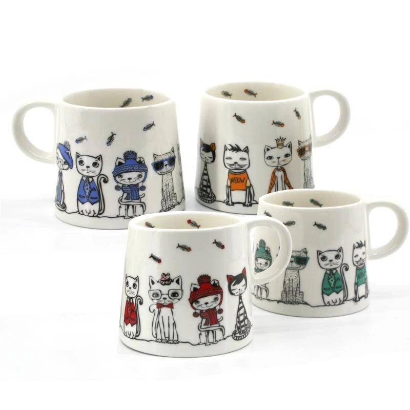 This set of 4 hipster cat mugs adds just the right amount of whimsy to coffee, cocoa and tea breaks. Perfect for gifting or adding flair to your own mug collection.