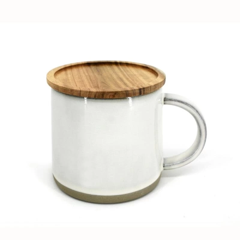 - Reactive Mug, with acacia lid, 400ml, white, stoneware.