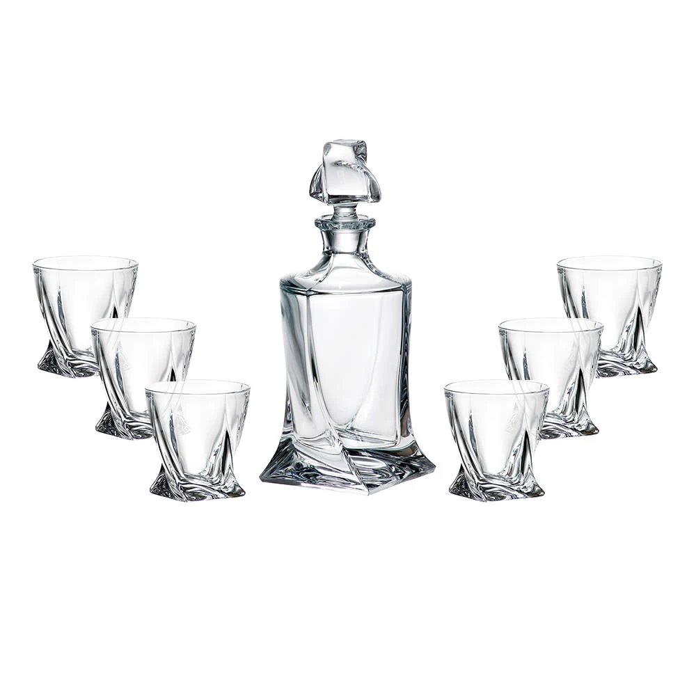 Designed for value and high quality, these mouth blown glasses are elegant and eye catching with their contemporary square twisted profile. Along with a stunning decanter, this set makes a lovely gift for a wedding, anniversary, birthday or Christmas present.