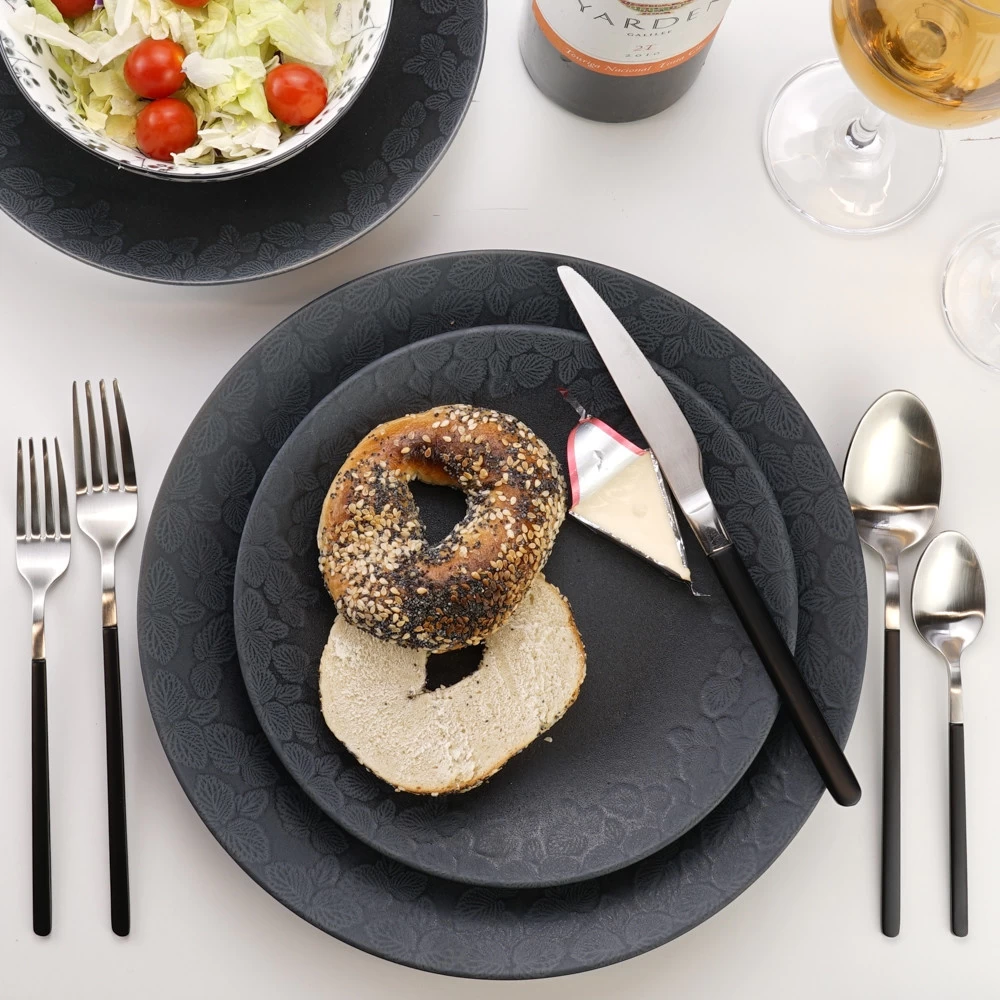 Have the sleek and modern table you always wanted, with the two-toned Kimono flatware. The gleaming, quality stainless steel blends seamlessly with the smart black handles for an undeniably classy look.
