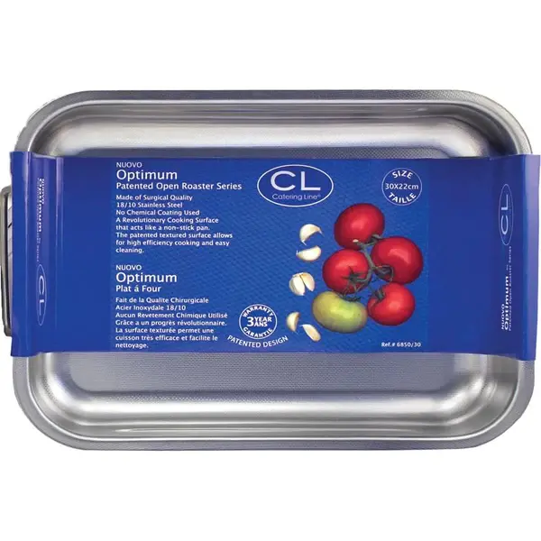 Catering Line Nuovo Optimum Roaster – 30 x 22 cm. Made of 18/10 stainless steel. The patented steel prevents food from sticking.