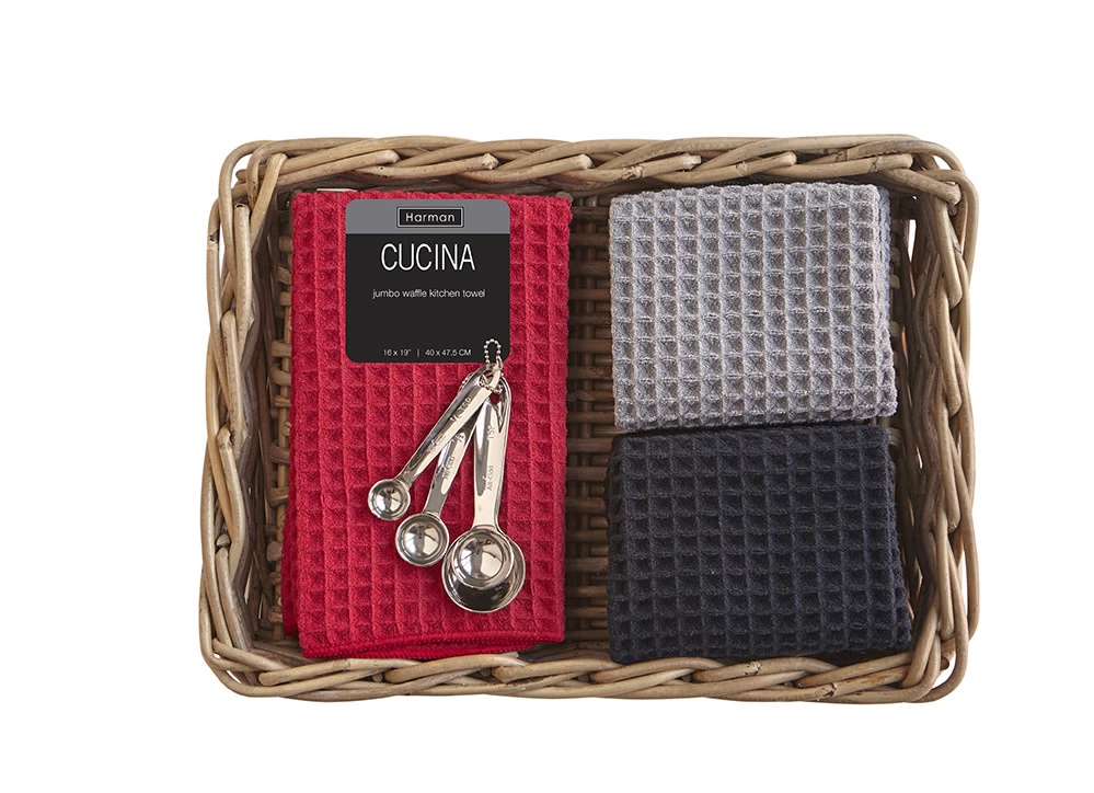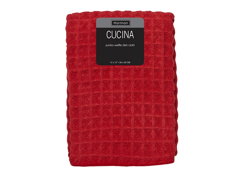 CUCINA JUMBO WAFFLE KITCHEN TOWELS, RED, SET OF 2