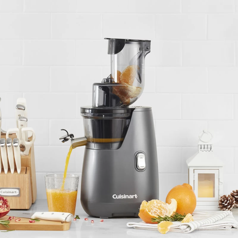 Crafting a wide range of fresh, healthy, homemade juice beverages is easy with the Cuisinart Easy Clean Slow Juicer. Engineered to powerfully press and crush fruits and vegetables for maximum juice extraction. This kitchen essential is a must for wellness-minded home chefs.