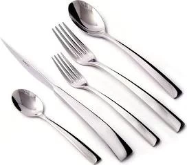 - 5 pieces per setting – teaspoon, tablespoon, dinner fork, dinner knife and salad knife