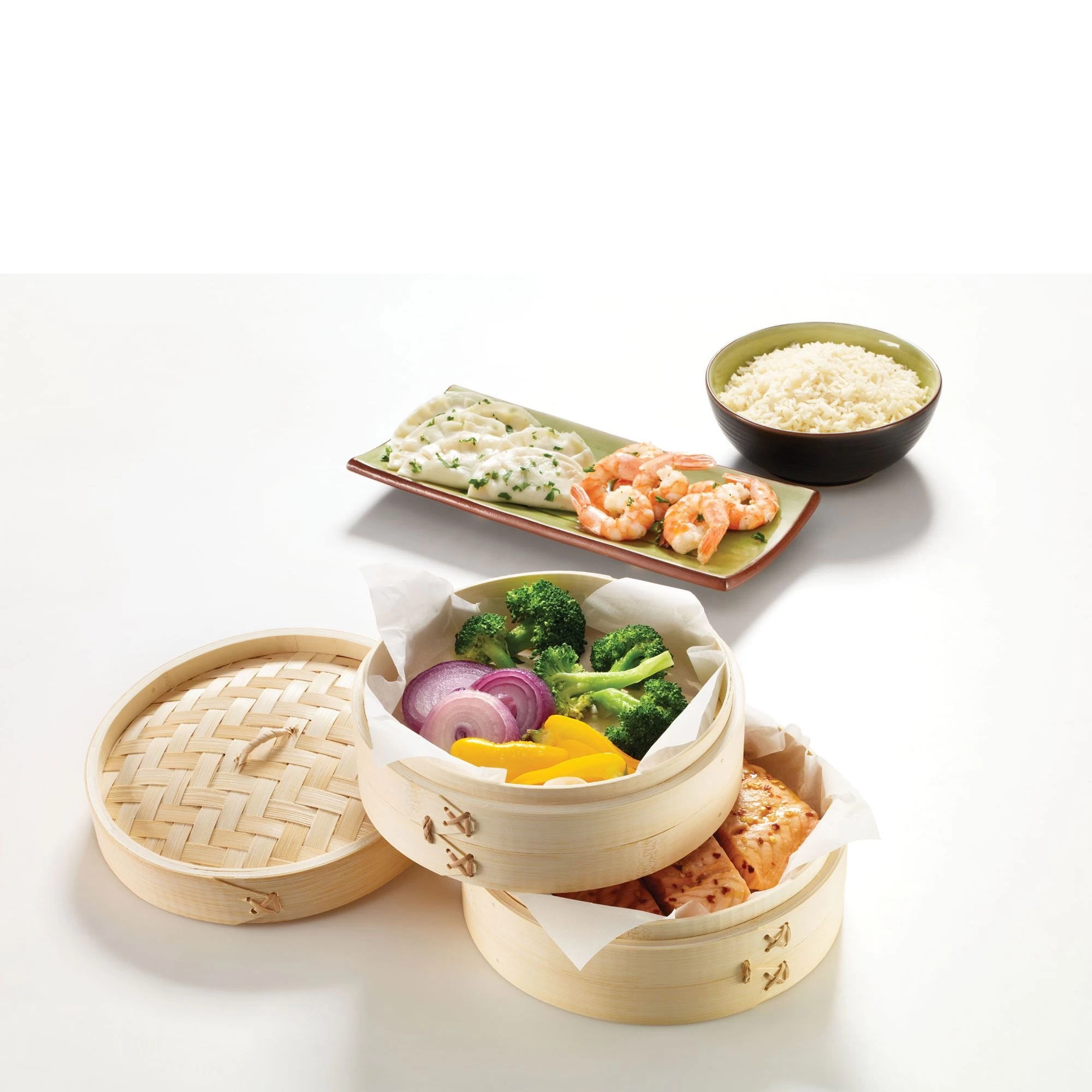 The bamboo steamer is not another kitchen gadget. Once you prepare a meal with it, you’ll wonder how you ever lived without one. The bamboo steamer allows you to preserve the flavor, texture, minerals, and nutrients of your food. Prepare and enjoy perfectly moist and delicious fish, vegetables, rice, meats, and desserts.