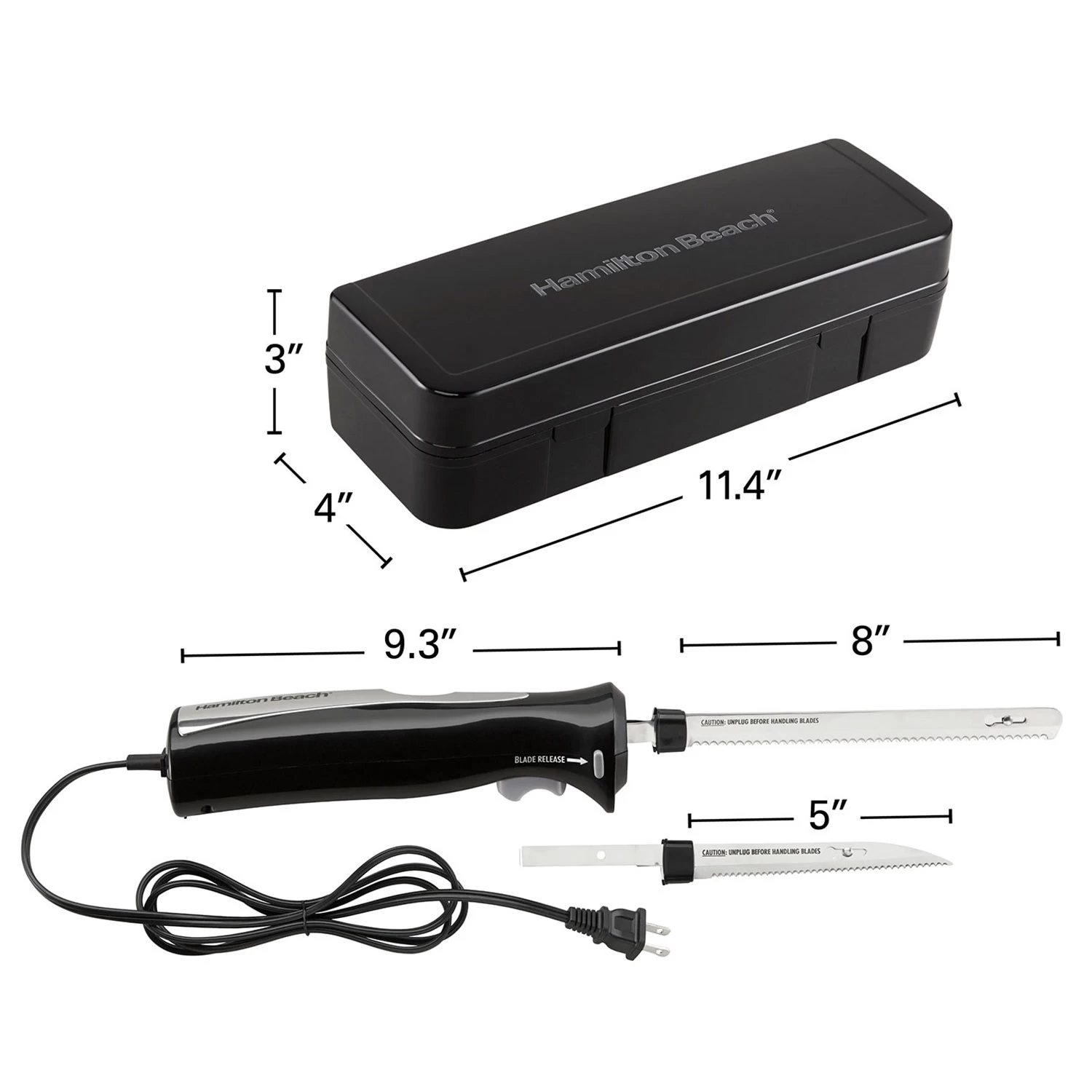 - 8″ carving and 5″ kitchen utility blades included