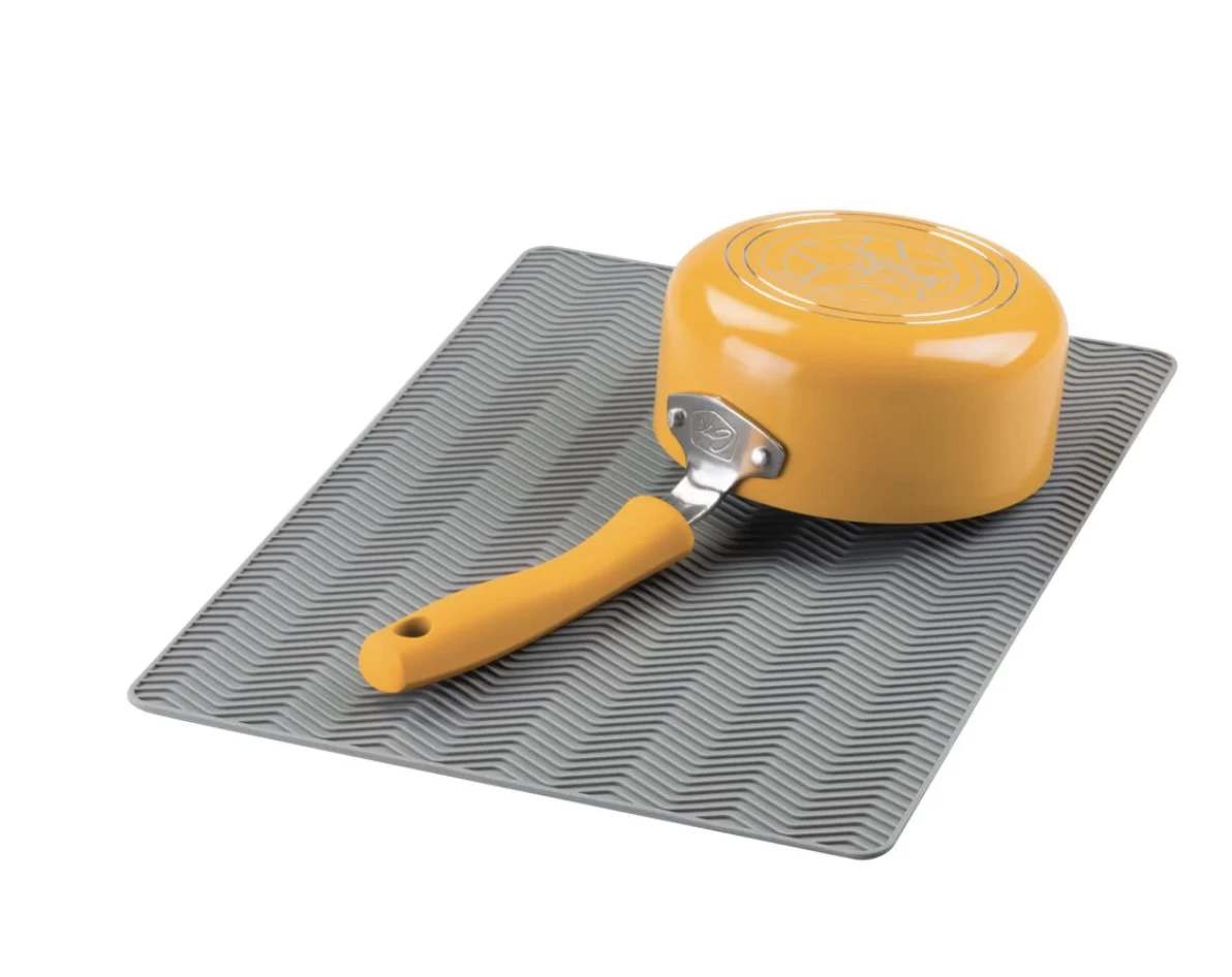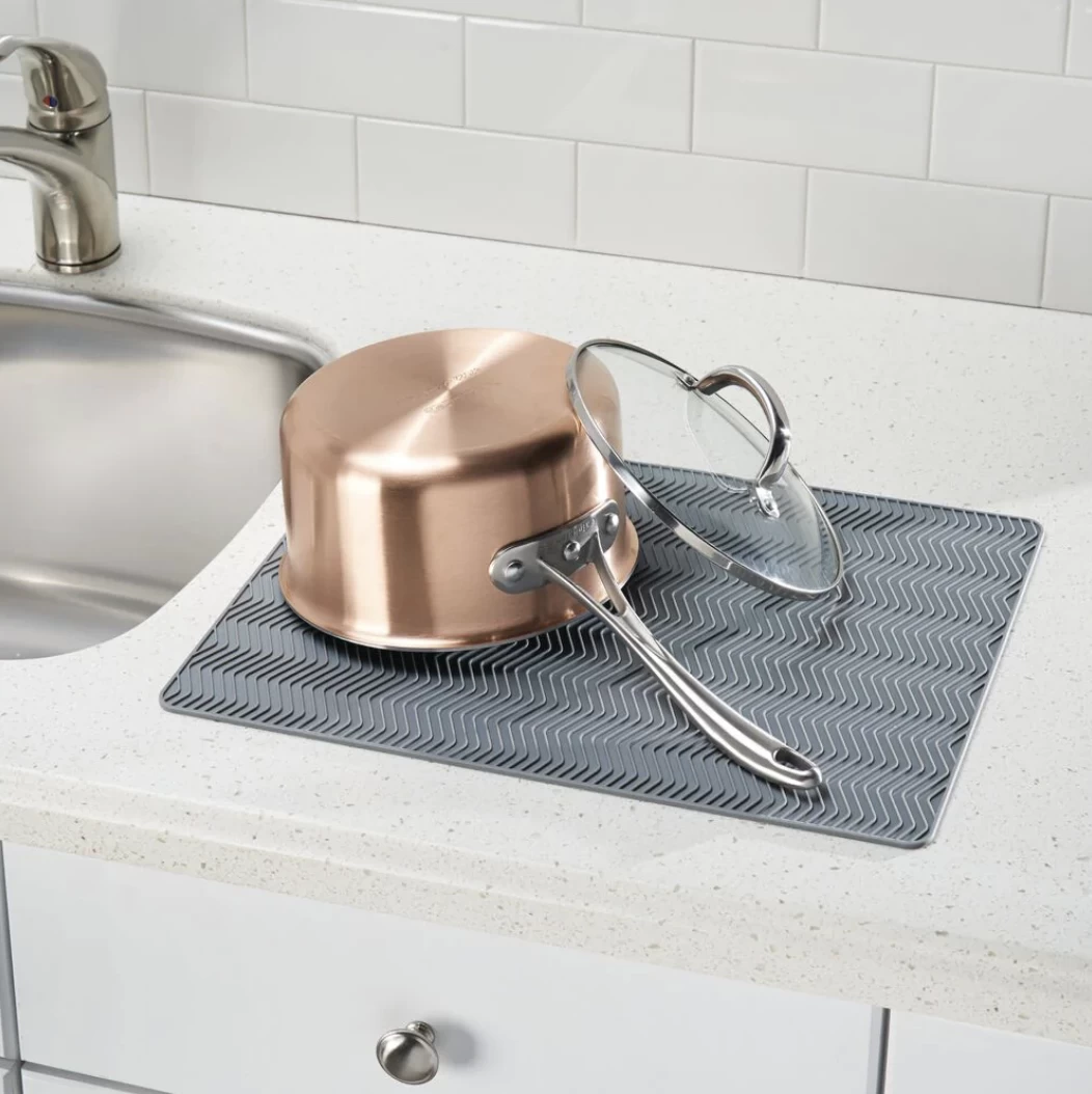 The non-slip design stays in place on wet countertops, and it rolls up for convenient storage in drawers and cabinets when not in use. This versatile kitchen mat is heat-resistant up to 572 degrees and can be used as a drying mat, drainboard, trivet, or cabinet liner.
