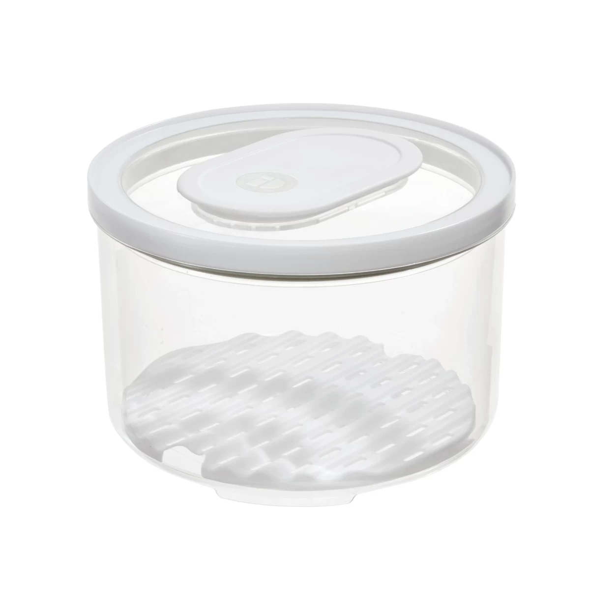 - An airtight lid with an integrated vent and removable cover allows you to adjust for lower humidity levels, and a removable drain tray insert can be filled with water for extra humidity.