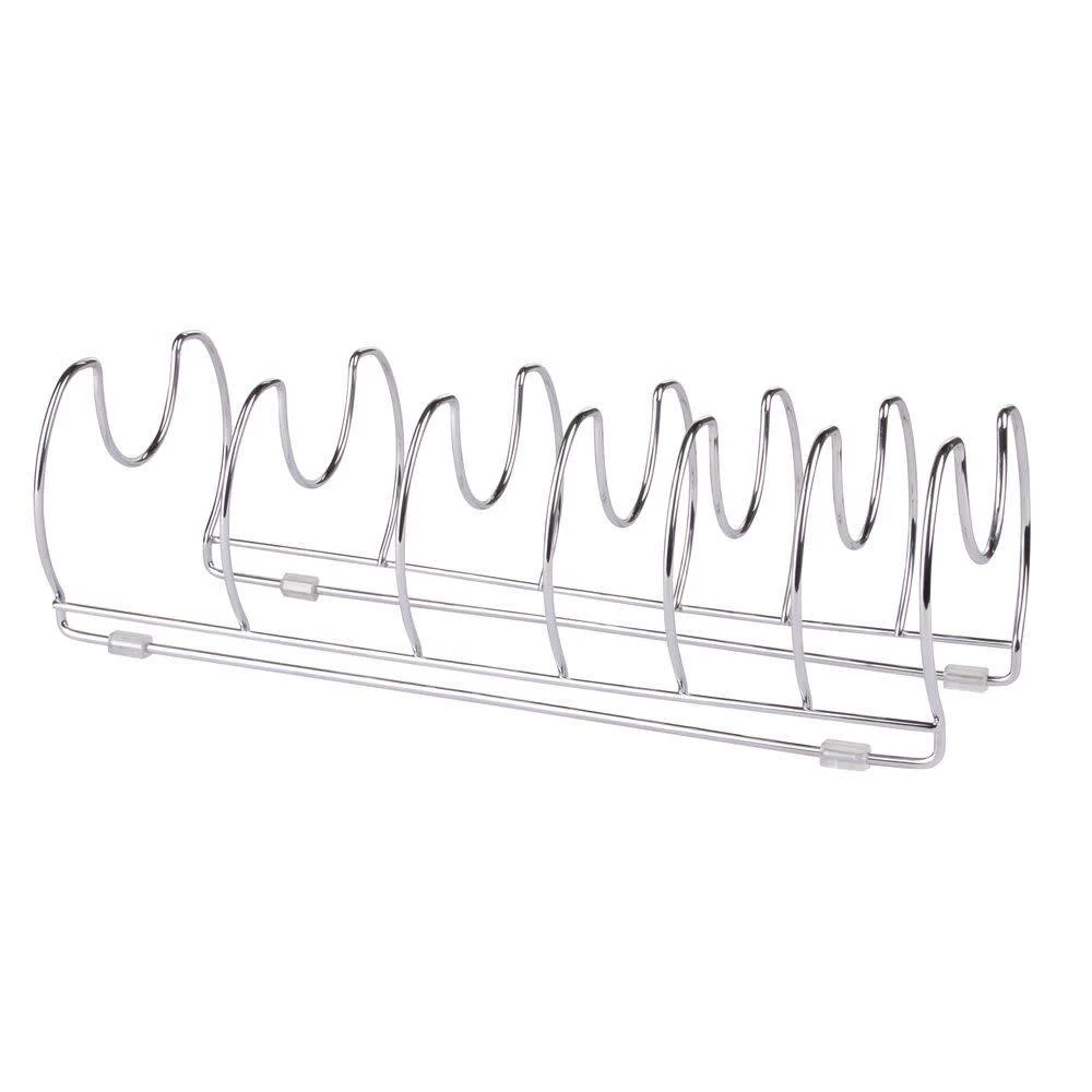 Innovative design paired with a space-saving solution for kitchen cookware. Six storage slots for pans, lids or cutting boards. PVC feet keep it in place.