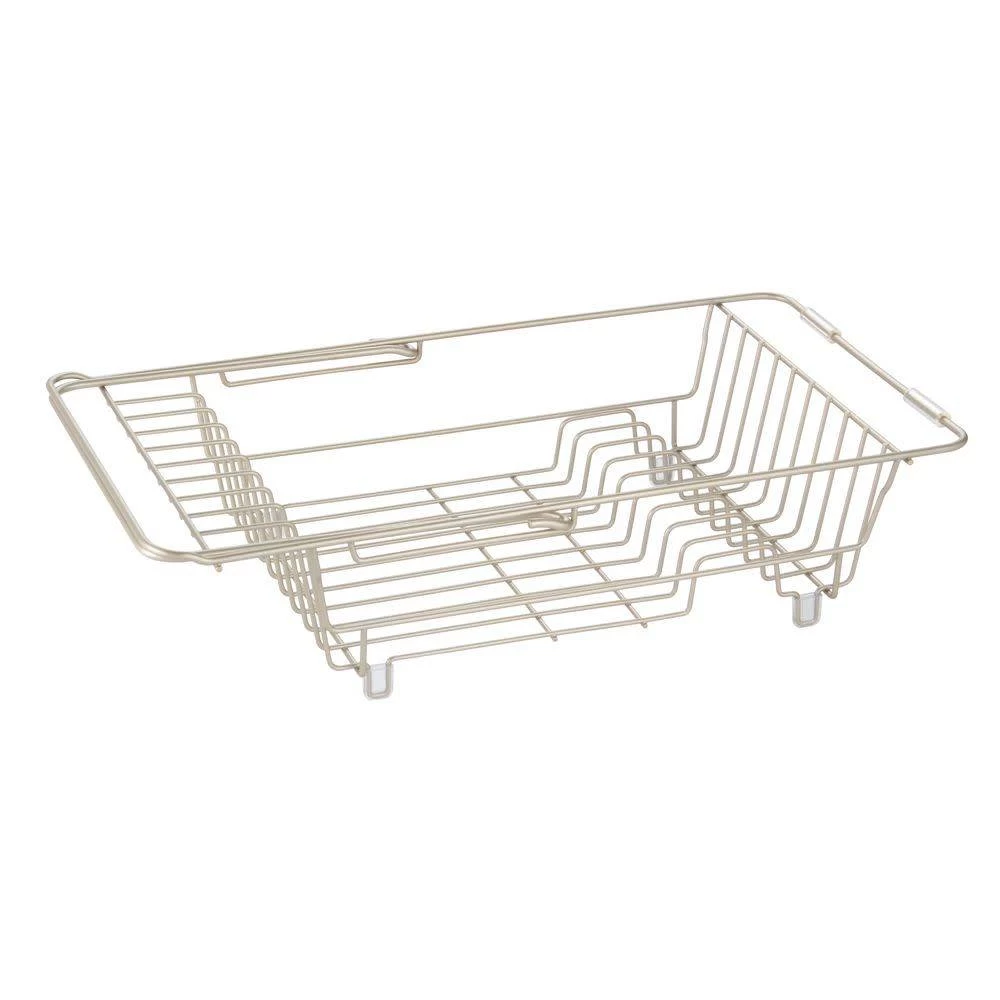 Arm expands to fit larger sinks. Plastic caps on arms and feet to prevent scratches.