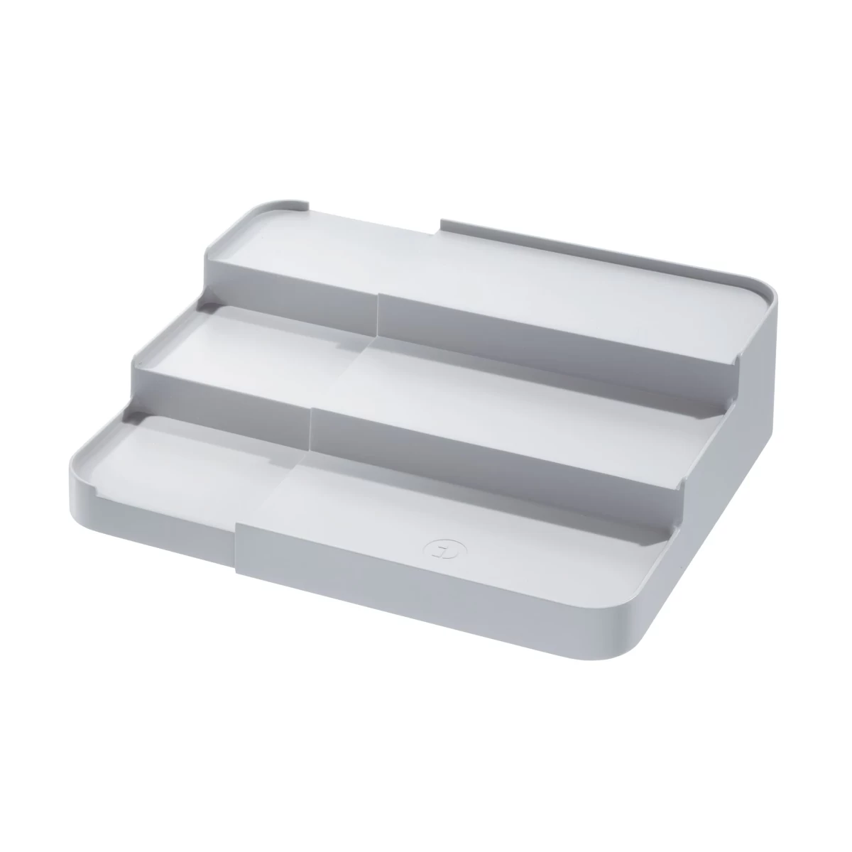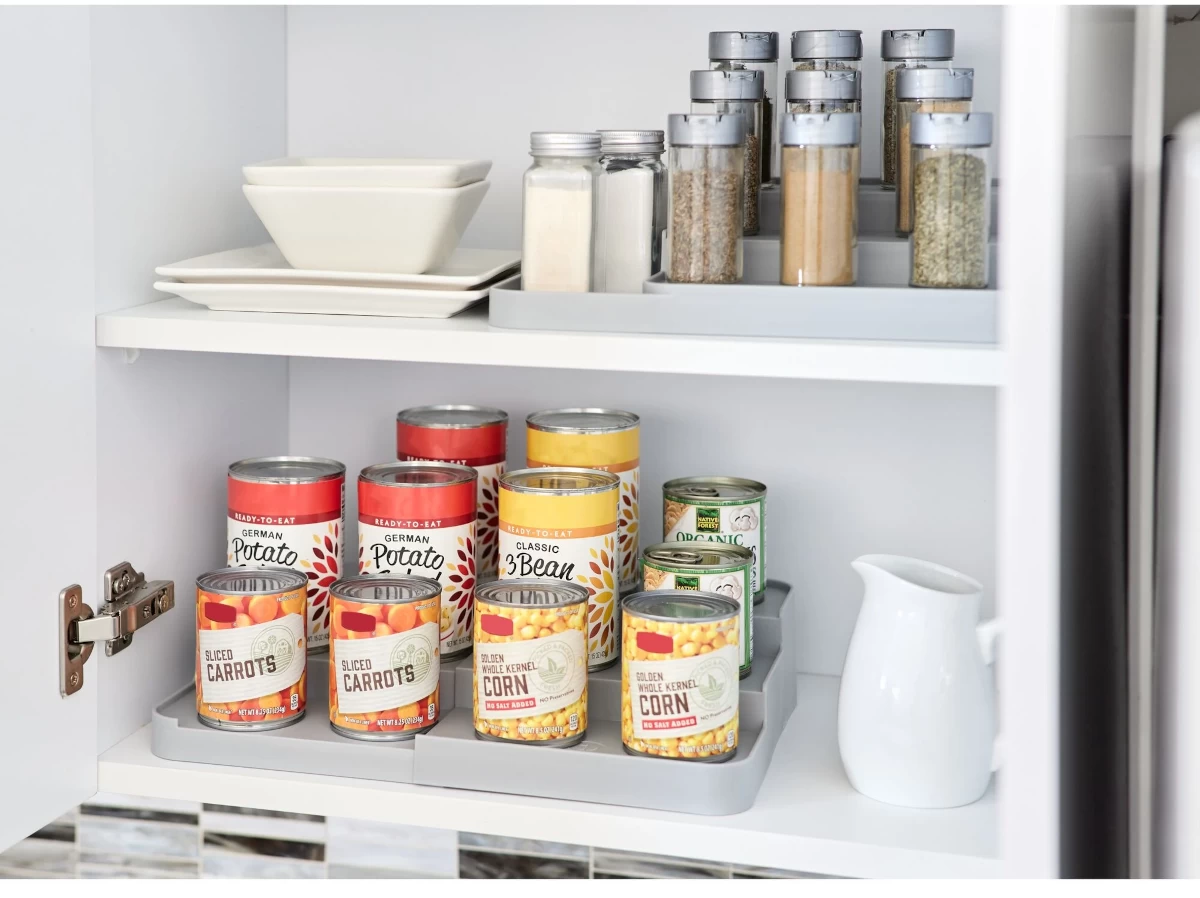 This eco-friendly organizer features three tiered shelves to provide storage in the kitchen and pantry for spices, herbs, seasonings, salt and pepper shakers, and more.