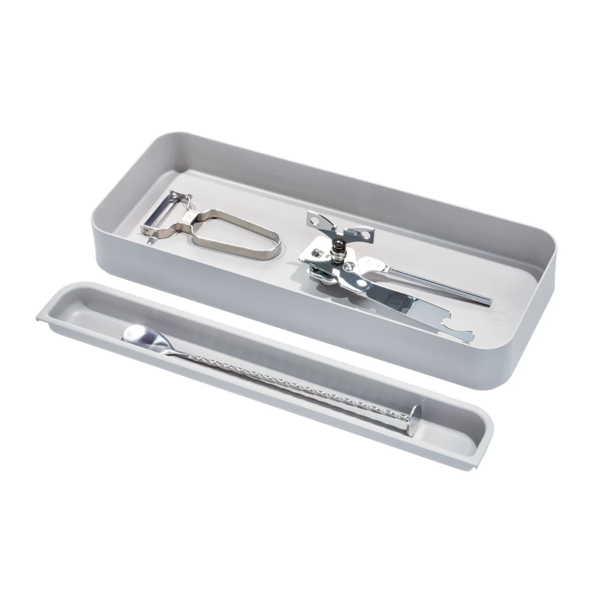 This eco-friendly bin provides storage in kitchen and pantry drawers for items such as larger utensils, spatulas, flatware, gadgets, measuring cups and spoons, and more.