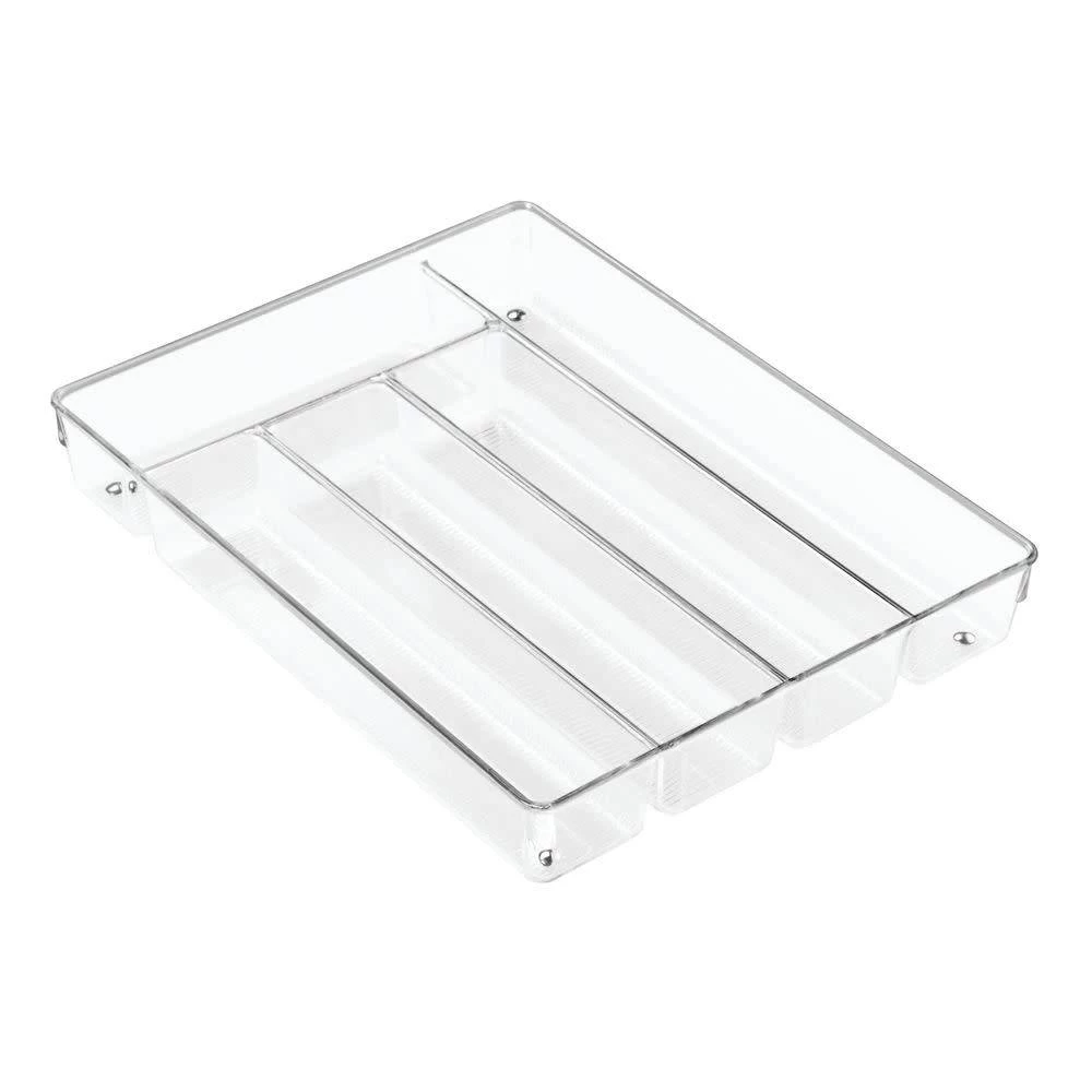 Kitchen drawer organization offering a clean look and transparent surfaces for easy visibility.