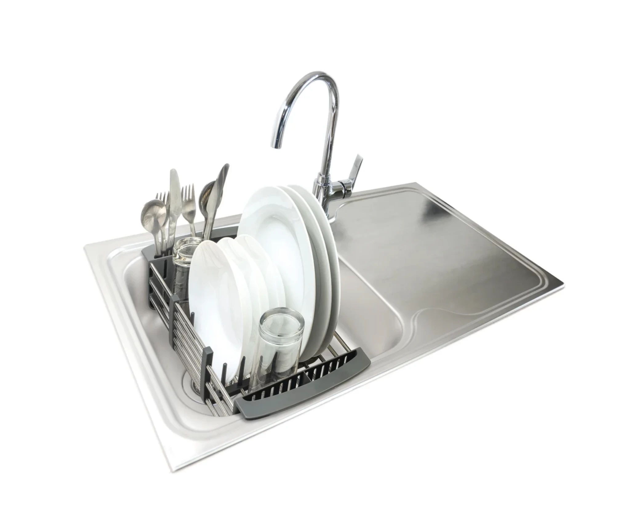 The Joie Expandable Dish Rack is the perfect way to save space in your kitchen. It can be shortened or lengthened to fit neatly in your sink, or placed on the counter for easy and convenient dish storage.