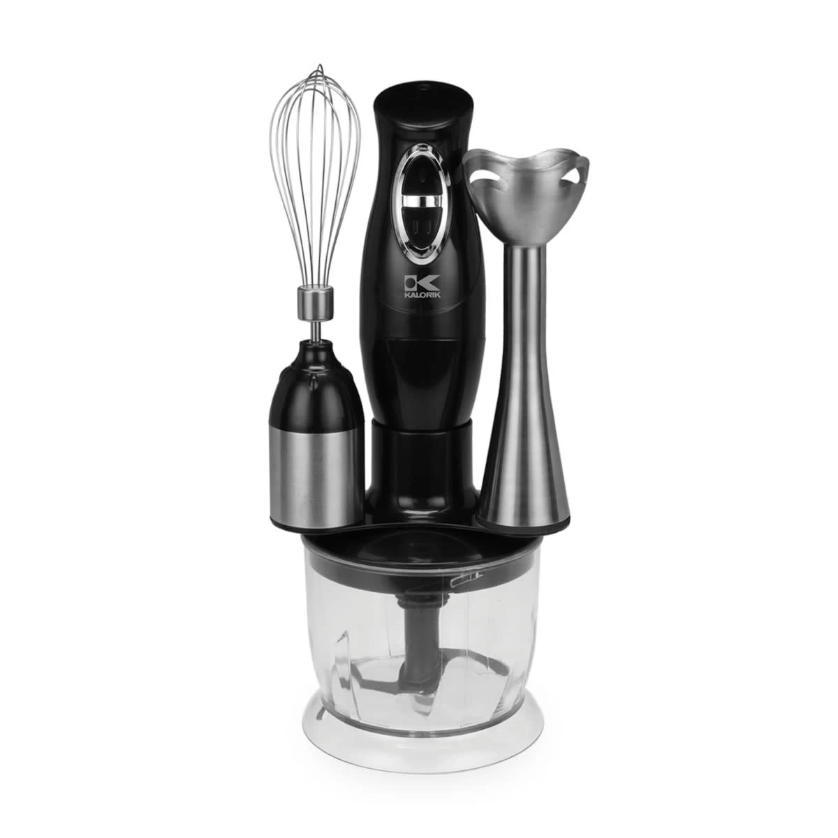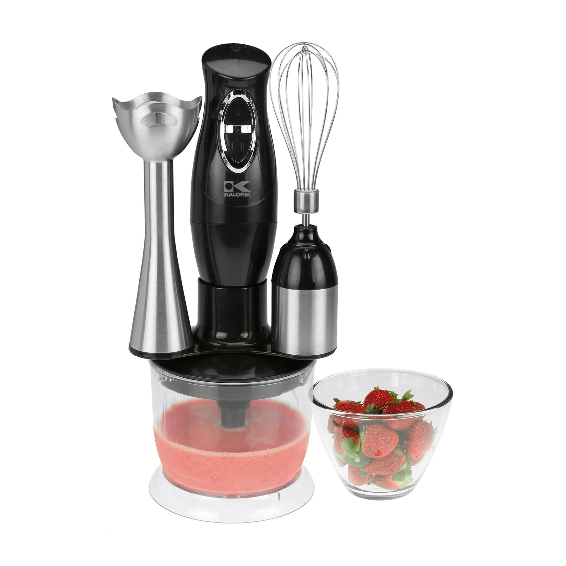 - The Kalorik 3-in-1 Immersion Blender features a stainless steel blade, a powerful 200-watt AC motor, and 2-speed control to effortlessly blend purees, sauces, shakes, smoothies, and more.