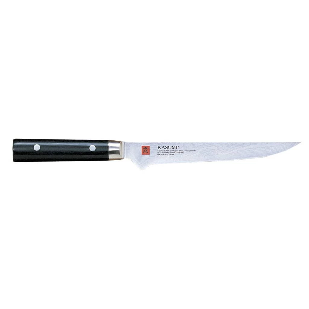Kasumi, which means “mist”, refers to the haze or cloudy look of the soft iron body of the blade, which provides contrast to the high gloss appearance of the carbon steel. Skilled Japanese Craftsmen forge Kasumi knives by joining a piece of soft iron with a piece of carbon steel. After forging, hammering, and shaping, the carbon steel becomes the blade’s edge, while the softer iron portion, becomes the body and spine of the blade. The end result is an extremely sharp Kasumi knife that is both easy to sharpen and holds a sharp edge longer.