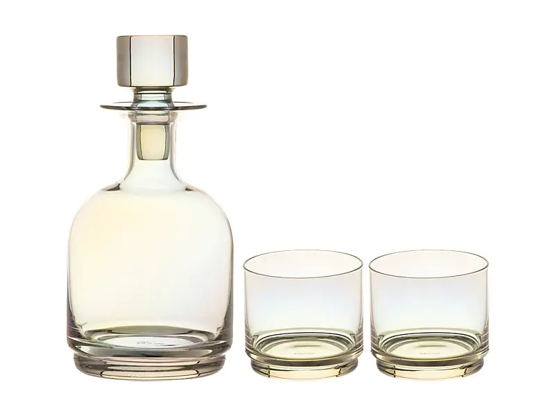 Add a splash of colour to your summer with this three-piece stacked decanter set from the Glamour collection. Designed with whisky lovers in mind, it includes a decanter with a glass stopper and two round tumblers. With an elegant vibrant tone and striking stacked profile, this gorgeous set looks beautiful on display and will elevate any table setting. Handmade from quality glass, itβs a unique and beautiful gift idea.