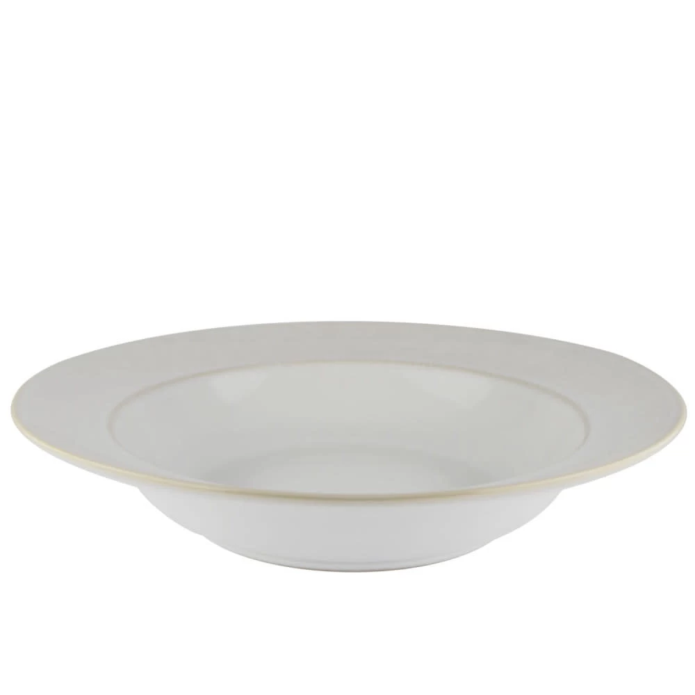 This rondo, Jade colored, stoneware pasta plate is a super-nice canvas for presenting a variety of culinary masterpieces. Stoneware is a type of fired ceramic dinnerware, made of clay that is fired at a high temperature until it has the consistency of glass. This results in a very strong material with a stone-like look and quality. This stoneware plate will bring a contemporary appeal to your dining table and its minimal design will look pretty cool when paired with contrasting color dinnerware.Â