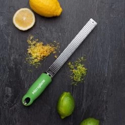 This tool grates even the hardest Parmesan Reggiano as well as other hard cheeses into fine lacy wisps. Ideal for topping your favorite spaghetti and meatballs or a Caesar salad. It’s also wonderful for effortless citrus zesting.