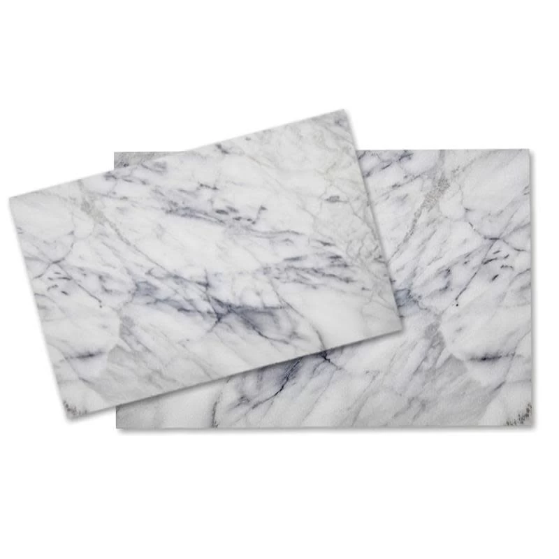 Marble Board, 30 x 20 cm. Made of solid marble, prized for its cool, durable surface and uniquely patterned beauty. Ideal for serving and as a pastry surface. Non-skid feet offer stability while working and easy lifting when serving. Avoid direct contact with oils and acidic foods. Not recommended for use as a cutting surface.