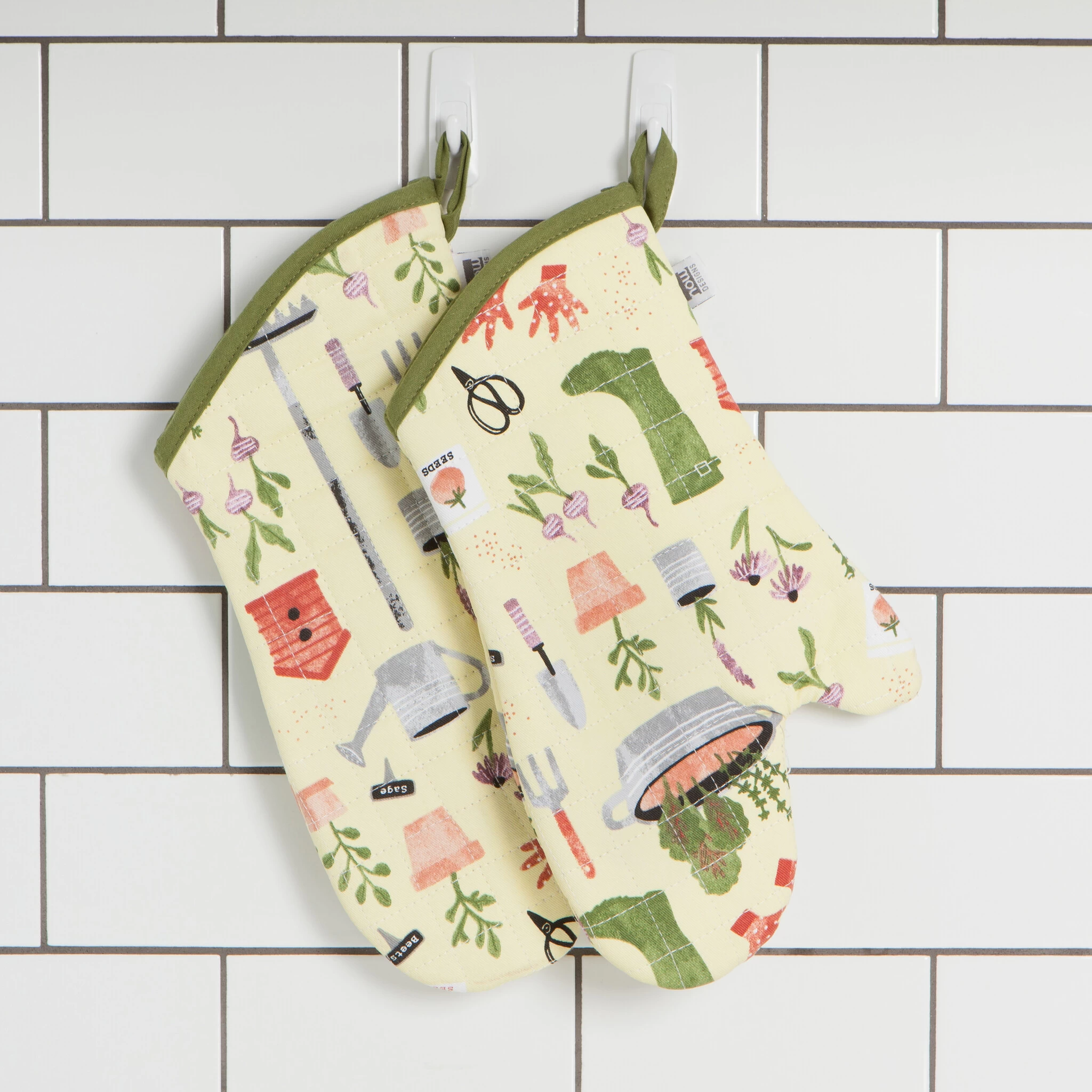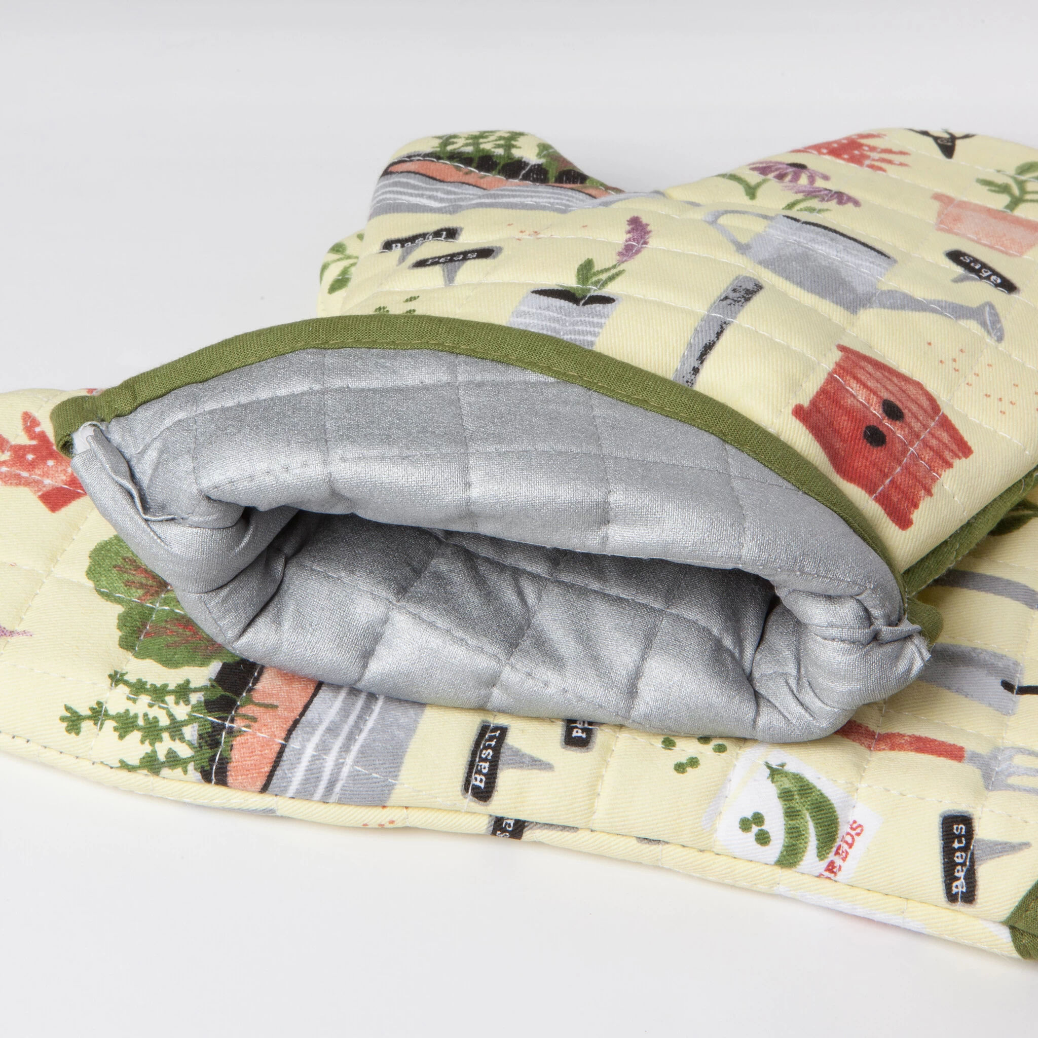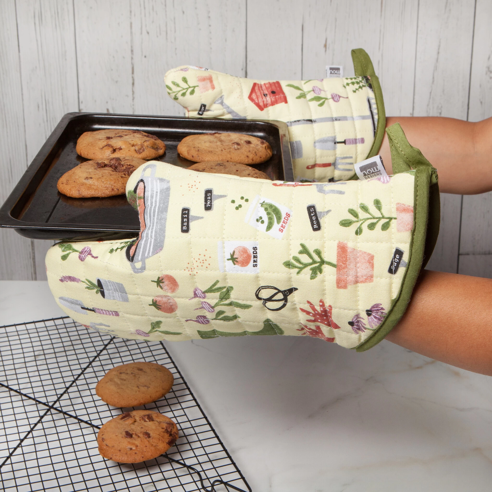 Made from 100% cotton and lined with silver acrylic coated cotton, each mitt is 13-inches long and measures 6.5-inch from thumb to exterior side. The quilted construction with insulation also helps to protect your hands from the heat.