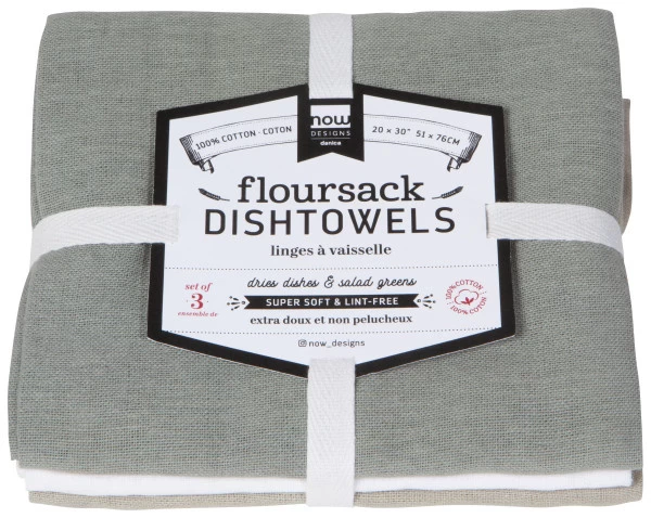 Add these Gray, White and Moonstruck Gray Flour Sack Towels by Now Designs to your kitchen linen supply. The soft, neutral shades and hard-working, absorbent fabric are an easy complement to your cooking space.