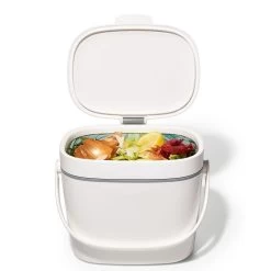 - Rotating handle for easy transport of waste to outdoor composter.