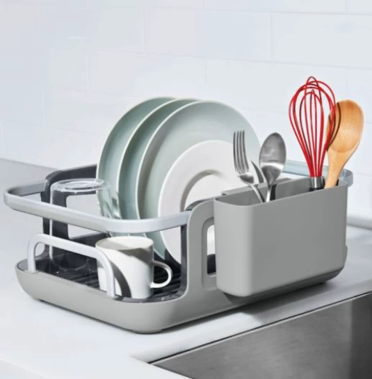 The OXO Good Grips Over-the-Sink Dish Rack is designed with busy kitchens in mind. It’s constructed from durable aluminum that will never rust.
