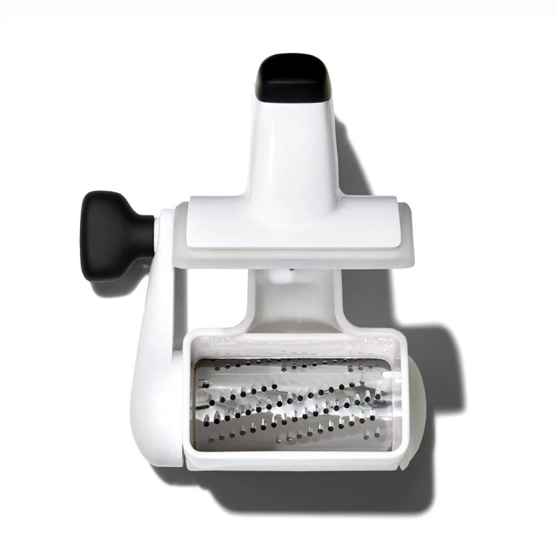 - Large barrel and sharp bi-directional stainless steel blades for efficient grating