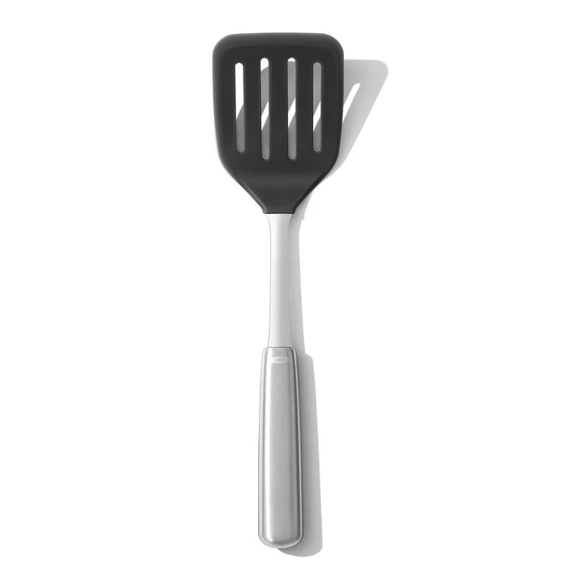 The flexible head easily slides under fragile foods (like eggs, pancakes, and crepes), but is sturdy enough to support whatever you’re serving.