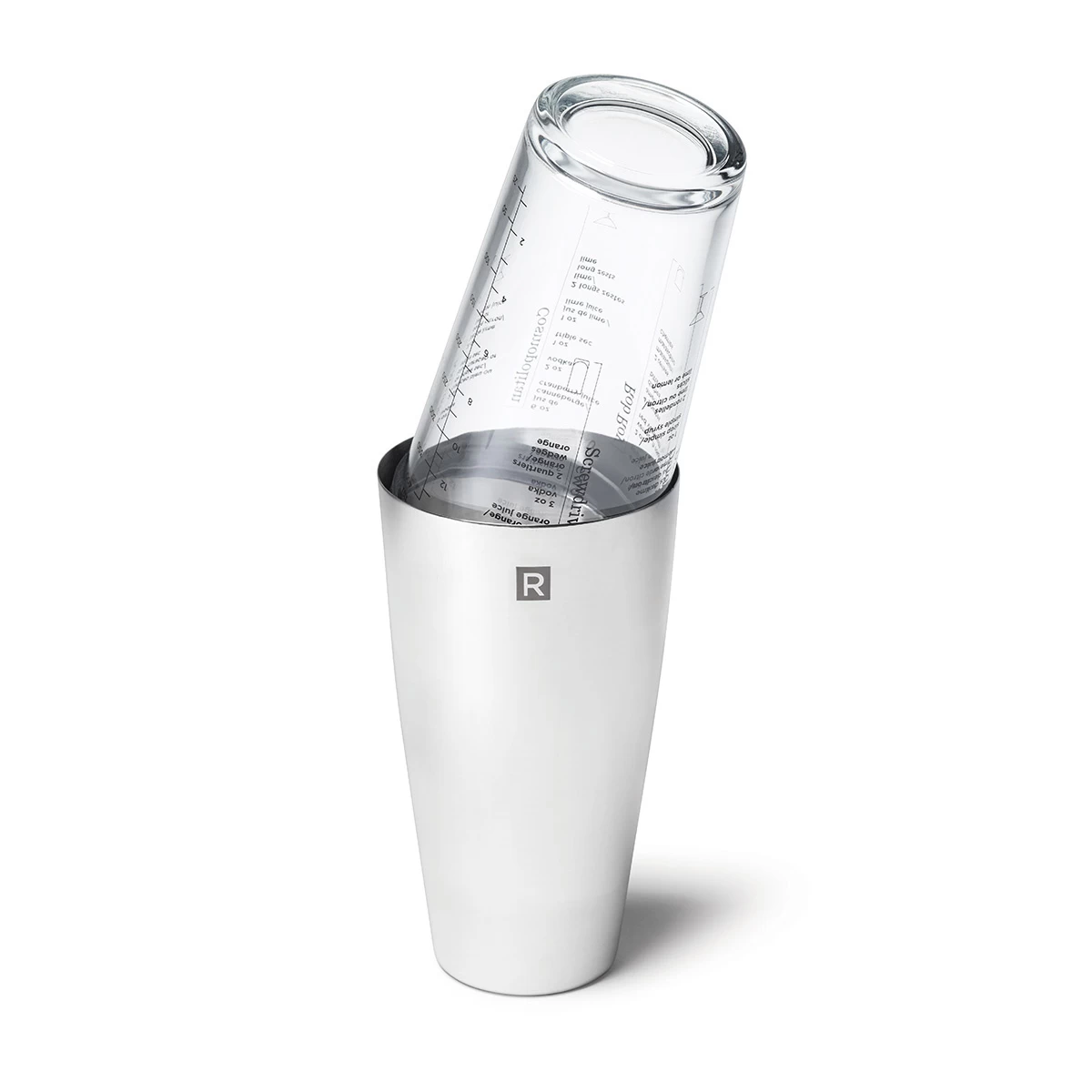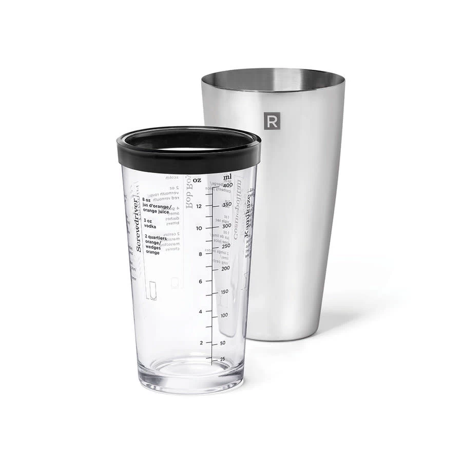 Make delicious cocktails with this superb Boston blender. Its silicone seal eliminates messes! In need of inspiration? Try one of the 5 recipes printed on the glass!