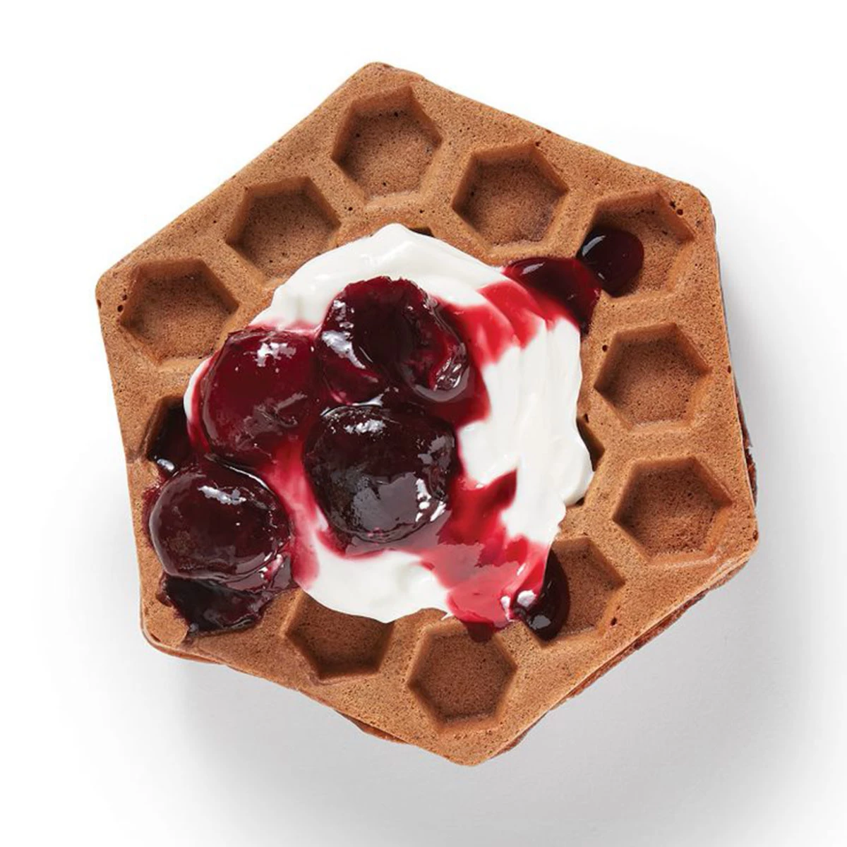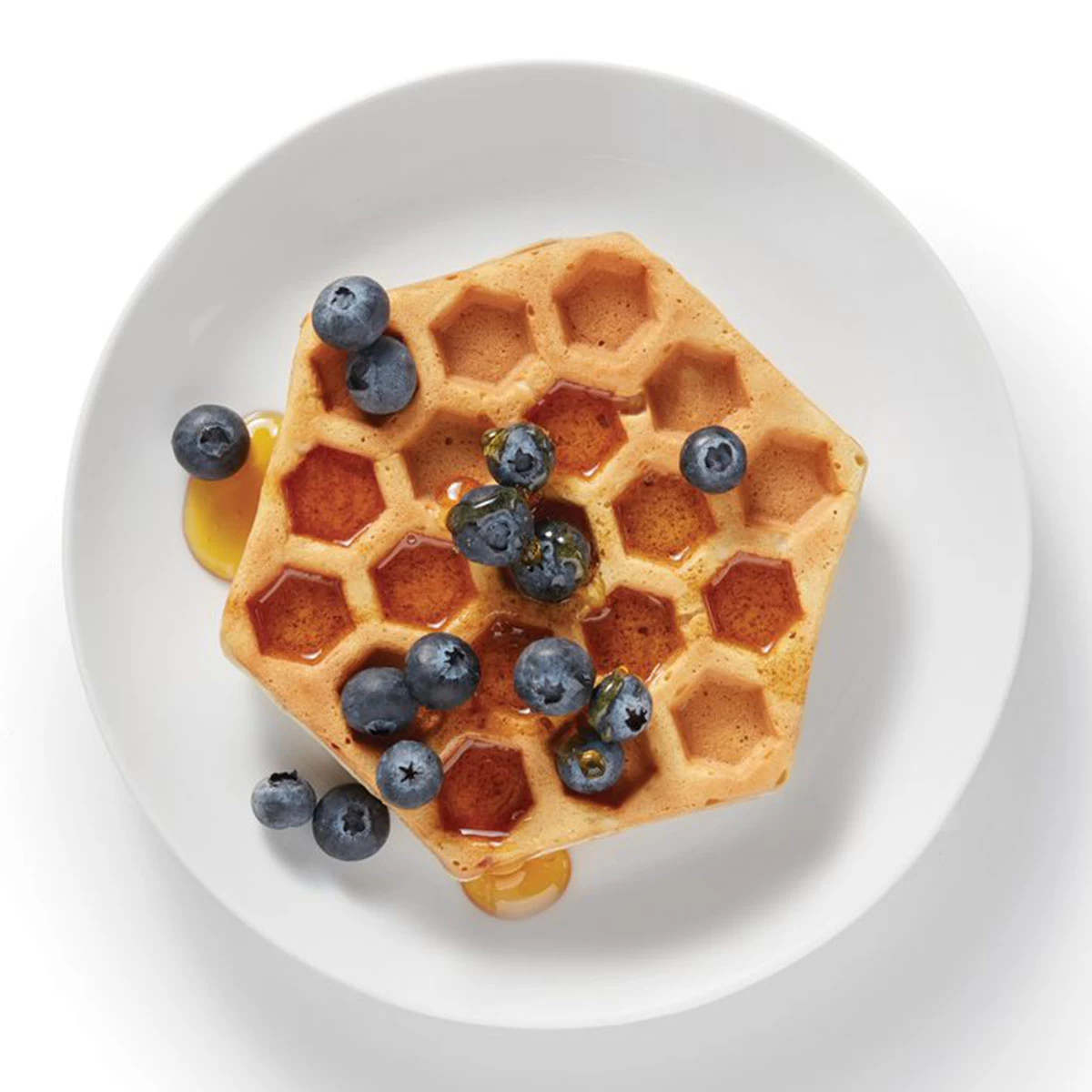 - Produces a honeycomb-shaped waffle in less than 5 minutes