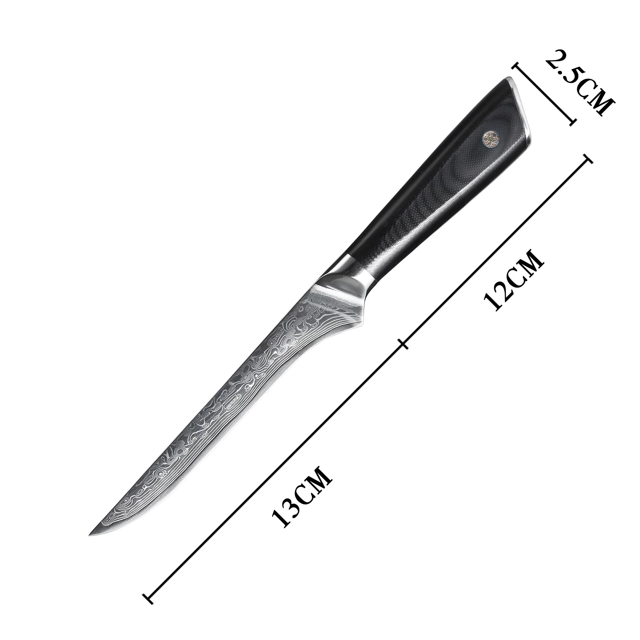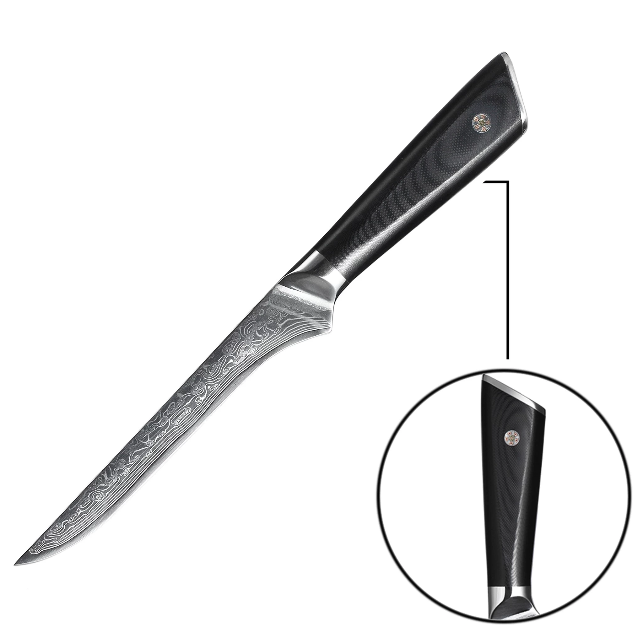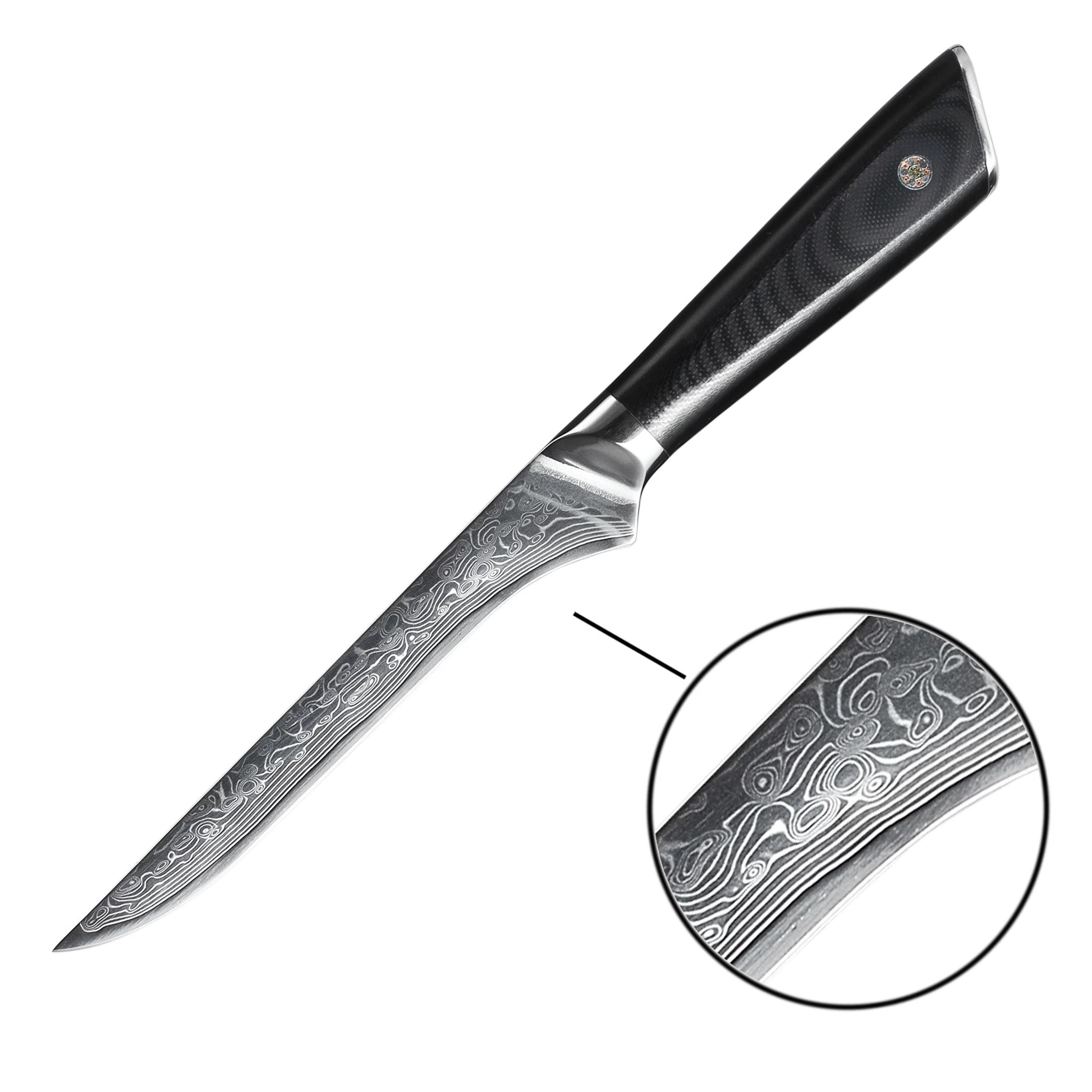 67 layers, Damascus VG-10 steel core – VG-10 is high carbon steel mixed with chrome – maintains its edge, easy to sharpen and is very resistant to corrosion