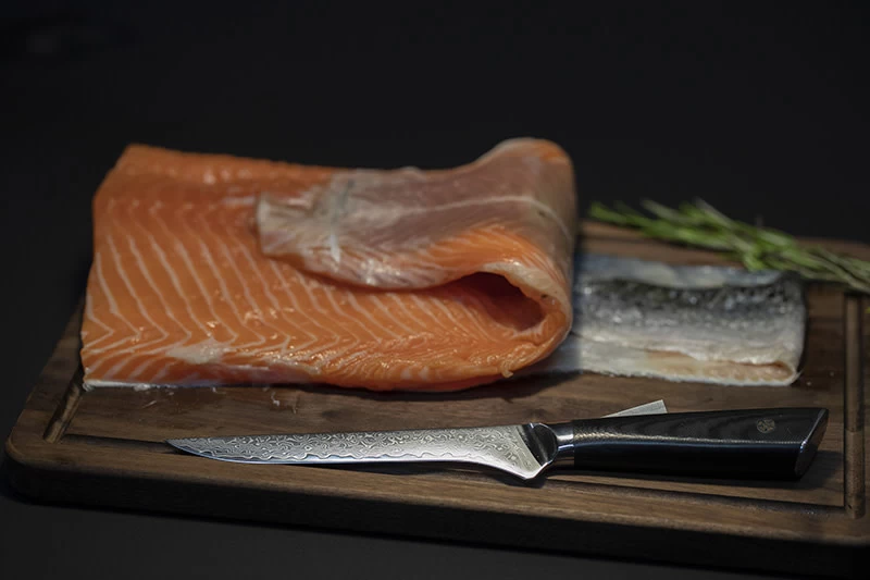 - 67 layers, Damascus VG-10 steel core – VG-10 is high carbon steel mixed with chrome – maintains its edge, easy to sharpen and is very resistant to corrosion