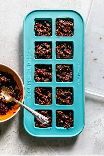 The Souper Cubes® 2 Tablespoon tray makes freezing and storing tomato paste, herbed butters, and other small portioned foods easier than ever.