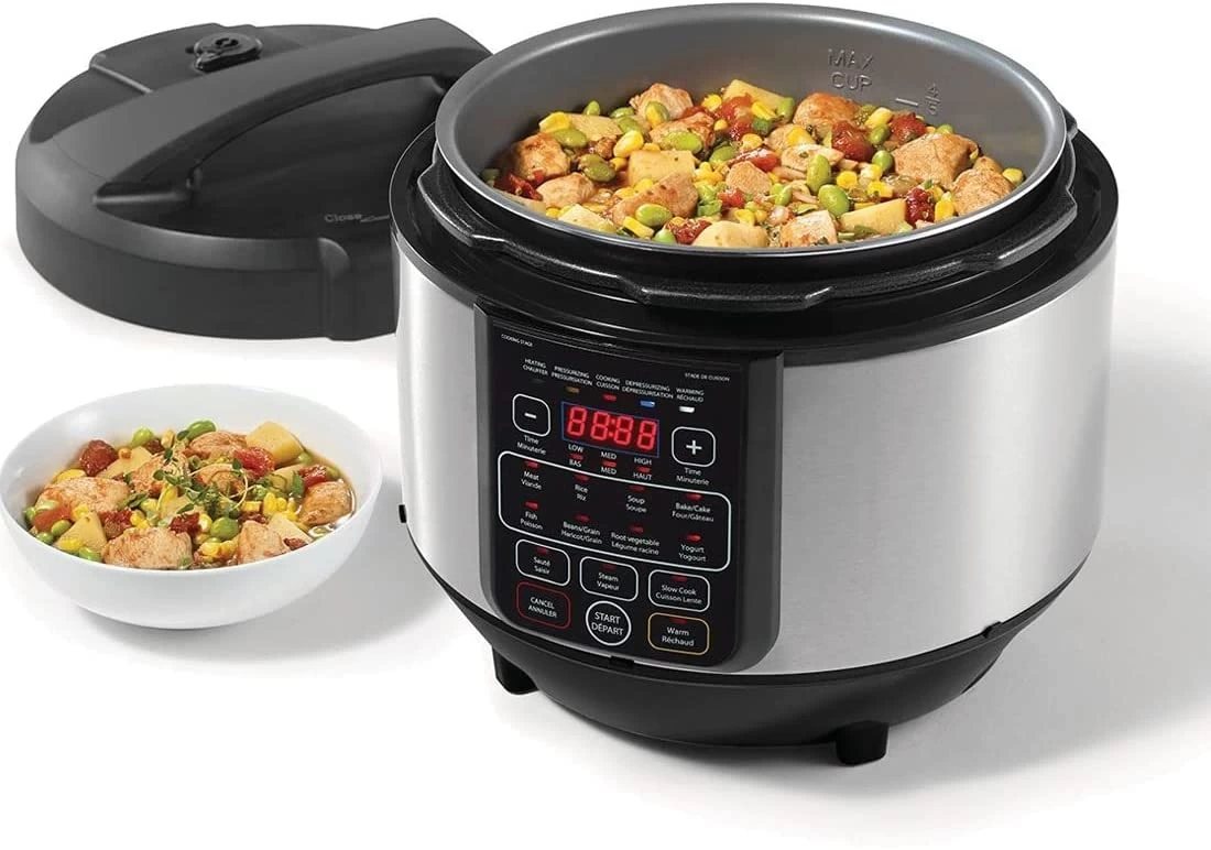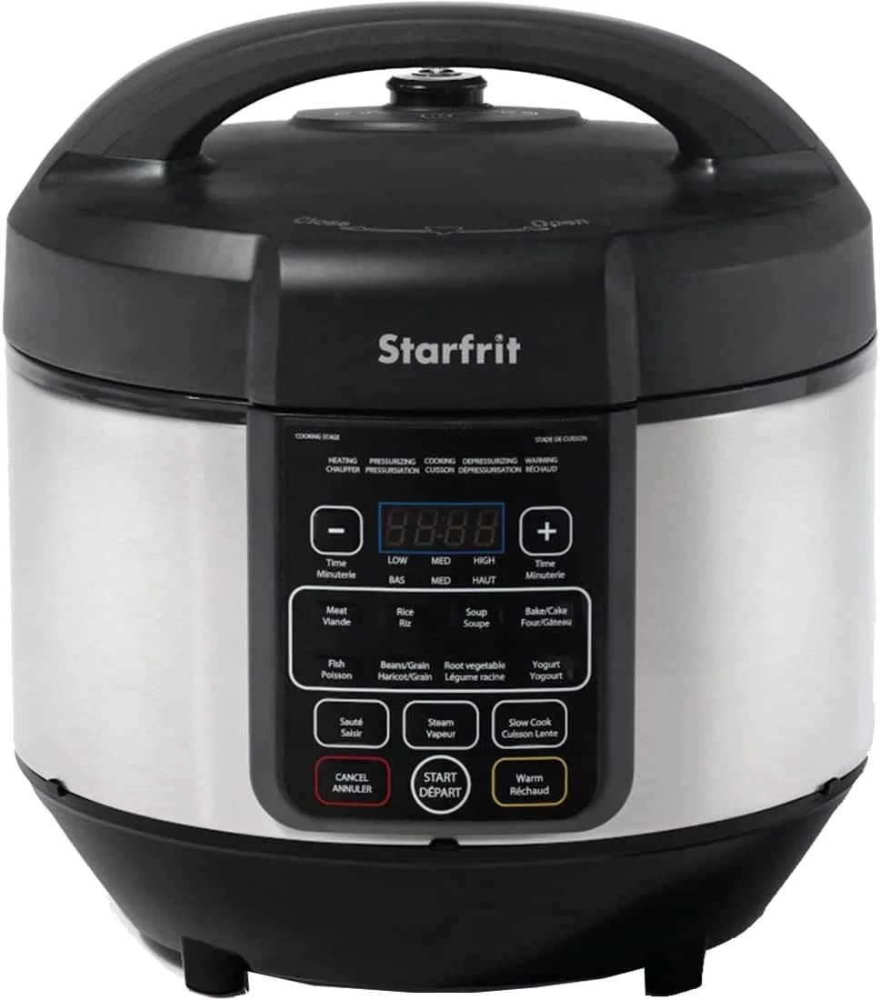 Cook healthy, appetizing meals faster and with less energy than conventional cooking methods with your multi-function electric pressure cooker. The Starfrit pressure cooker is designed with built-in safety mechanisms and a unique cooking progress tracker to monitor and display each cooking step. The 11 convenient and easy-to-use preset cooking functions are programmed to cook a wide variety of meals.