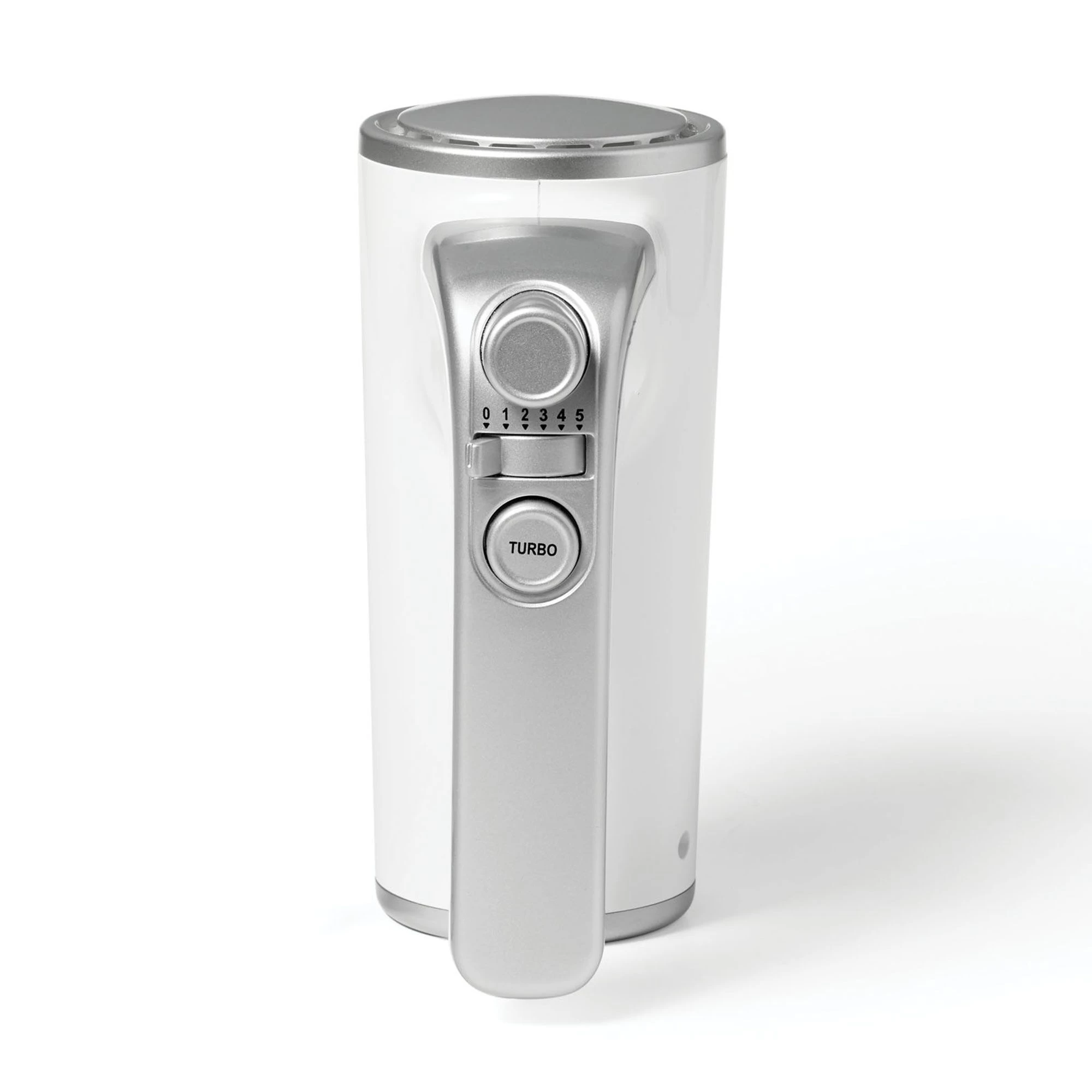 The Electric Starfrit 5-Speed Hand Mixer allows you beat, mix, whip and even knead dough. When taking out the stand mixer is too tedious or when you want to prepare quick and easy recipes, the Hand Mixer is pratical! The mixer comes with two attachments: set of beaters and set of dough hooks.