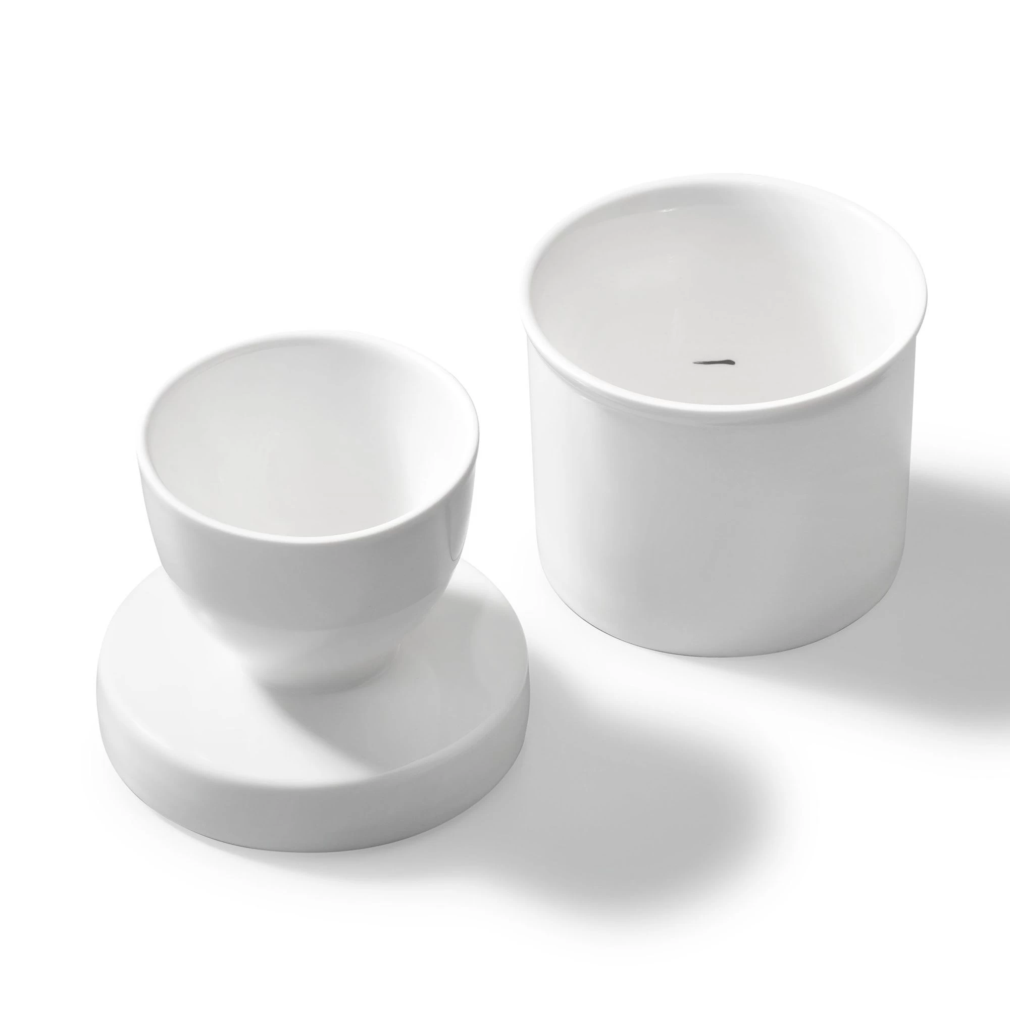 - Pack room temperature butter into the bell-shaped lid and place the lid into the base