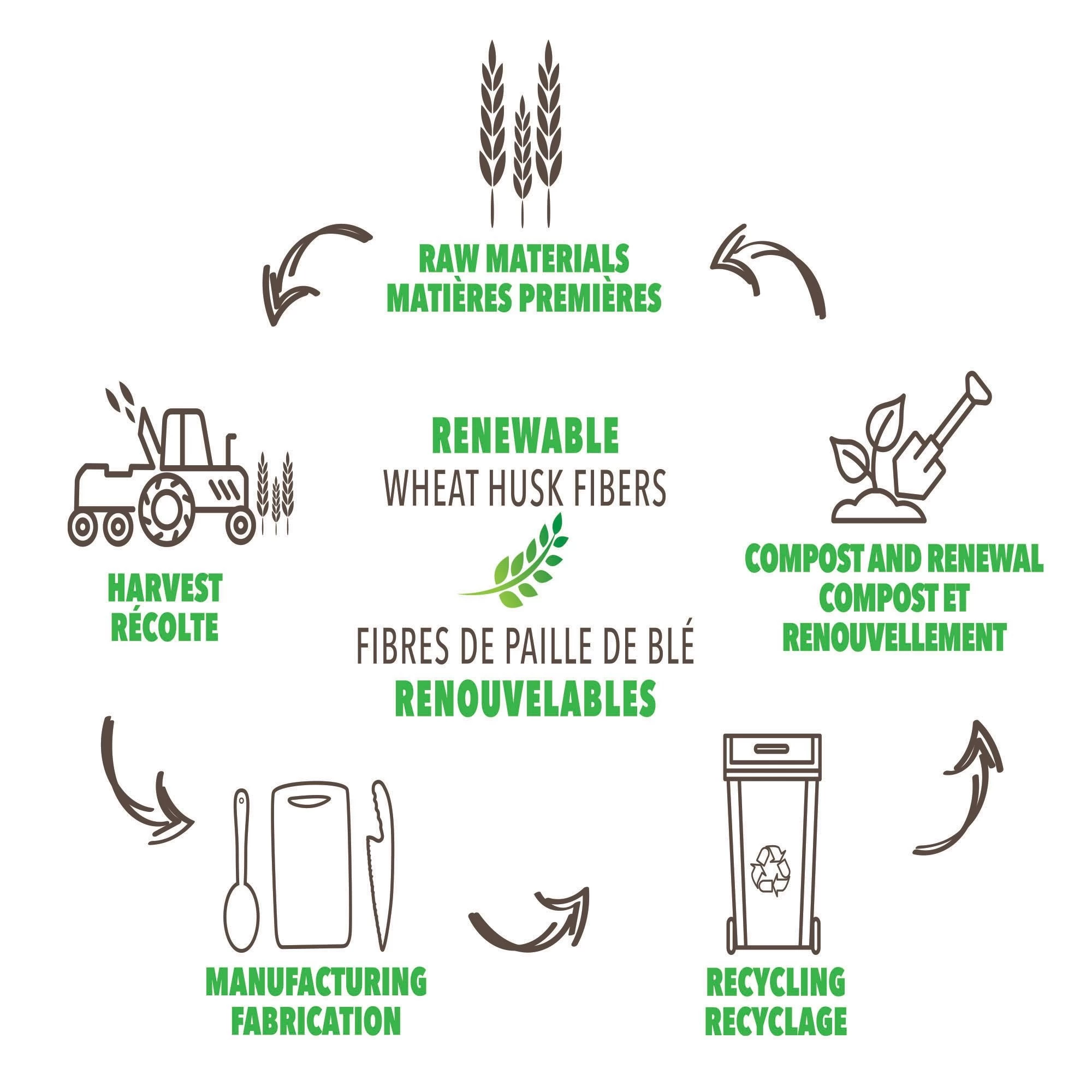 Gourmet ECO – A line of environmentally friendly kitchen accessories made with recyclable materials! All Eco products are made with natural wheat straw husk fibers. This set of cutting boards offers two practical sizes for the kitchen.