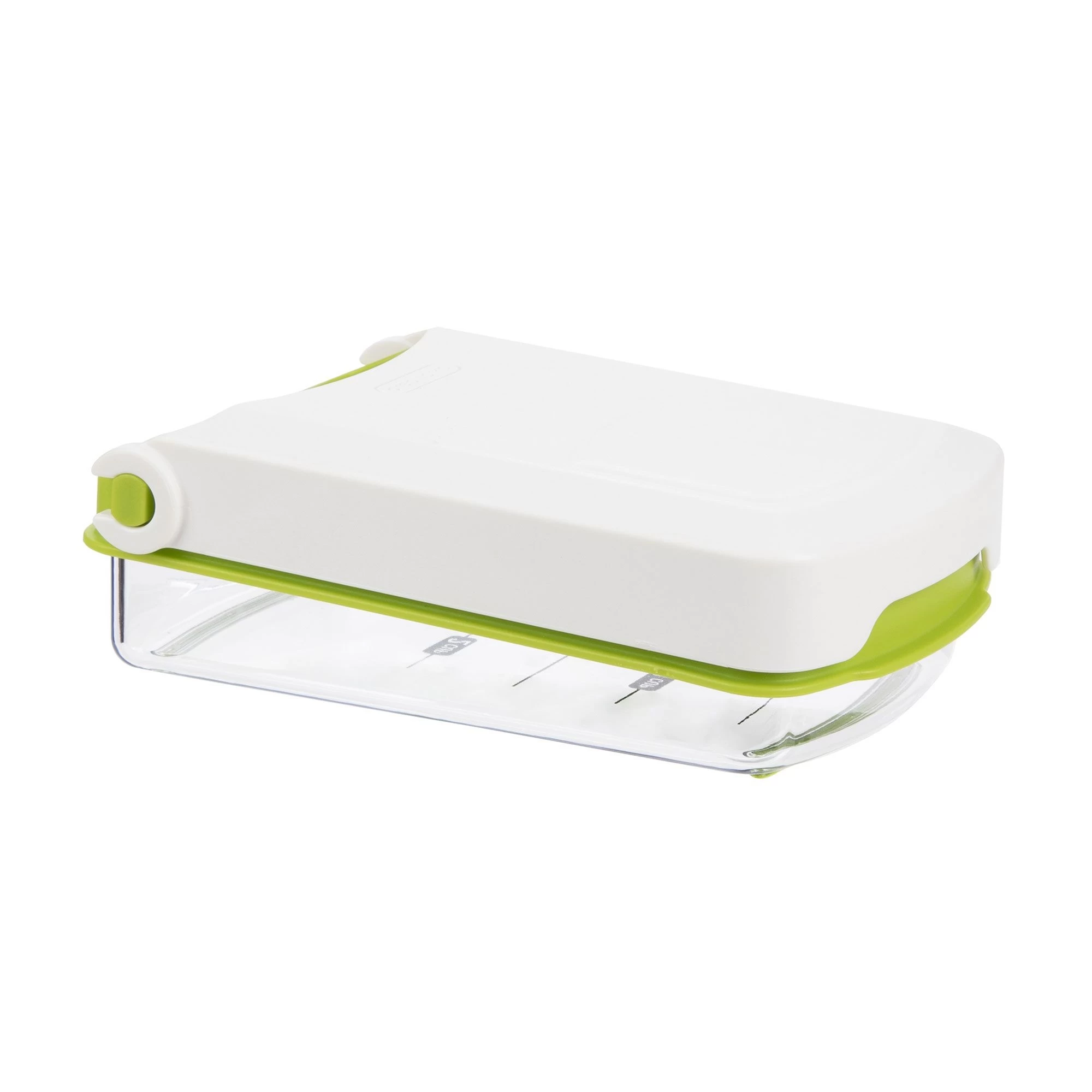 The onion chopper dices fruits and vegetables, and even eggs and ham – perfect for home made salads!