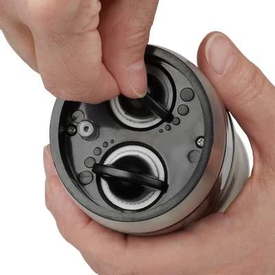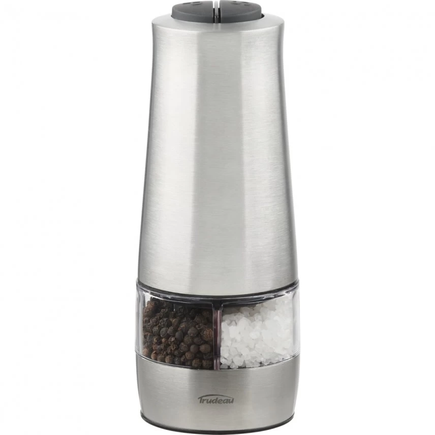 - Two separate buttons to activate the mill, one for pepper and one for salt