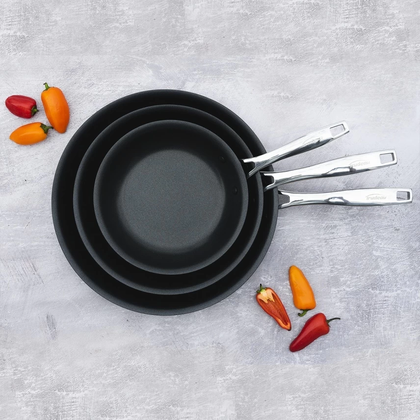 - The Trudeau Heroic 12-Inch Frying Pan features an induction base, hard wearing 3-ply non-stick coating and Resistech™ technology that ensures maximum fusion of the surface to the hard-anodized aluminum for a high level of durability.