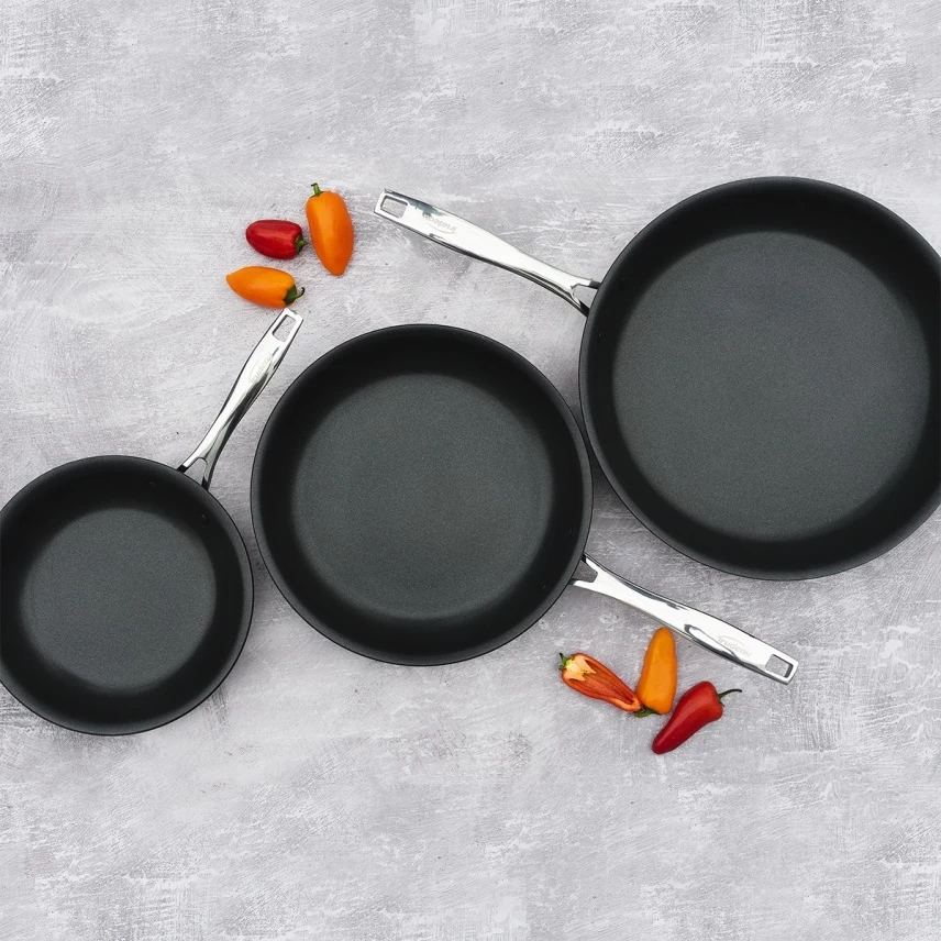 The Trudeau Heroic 12-Inch Frying Pan features an induction base, hard wearing 3-ply non-stick coating and Resistech™ technology that ensures maximum fusion of the surface to the hard-anodized aluminum for a high level of durability.