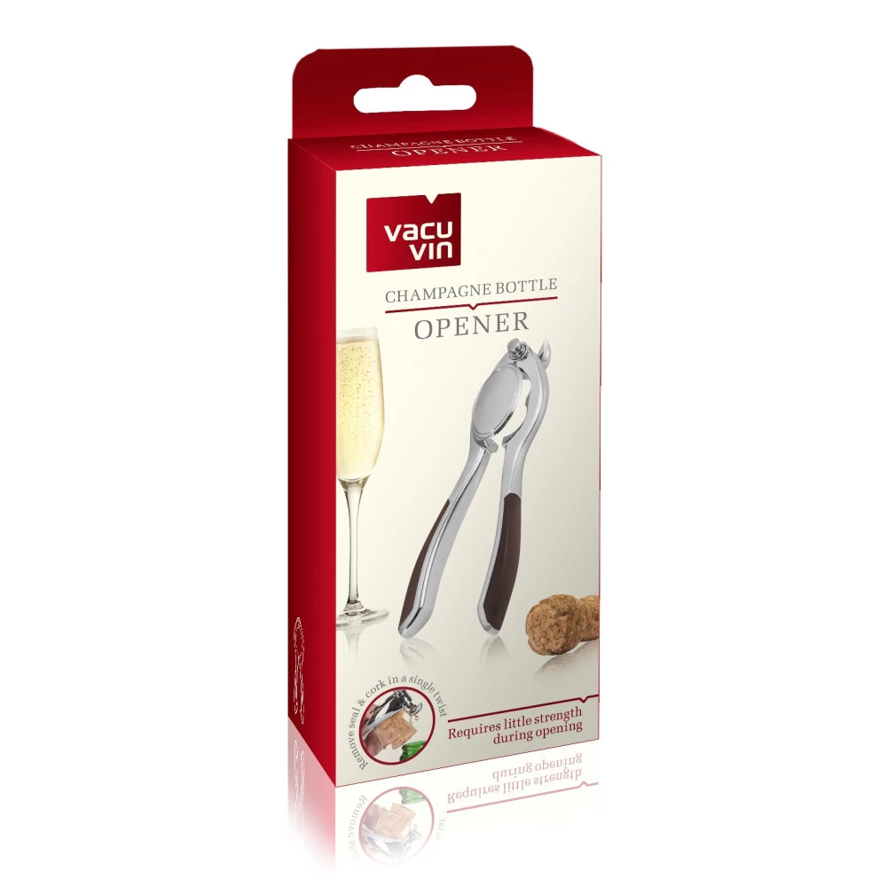 The Champagne Bottle Opener from Vacu Vin takes away that sometimes nerve-racking moment of opening a bottle of champagne. Its smart design removes foil, metal loop and cork in one simple motion.