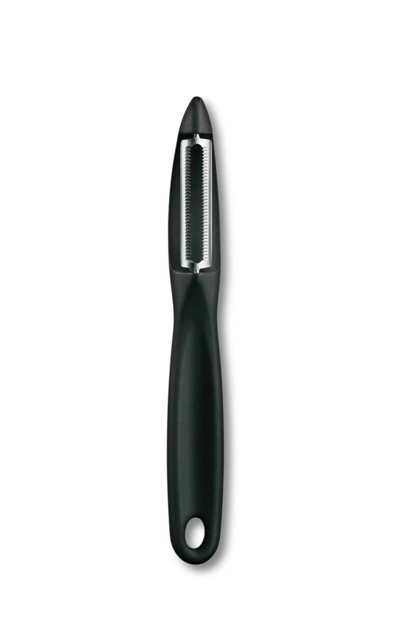 Cooking is an art where you draw with taste and dress with colors. As the master of your kitchen, you deserve the right tools to express your creativity. This is when the Victorinox Universal Peeler comes in handy. Its serrated edge is ready to face the firmest peels while its ergonomic handle makes cooking as fun as it is easy.