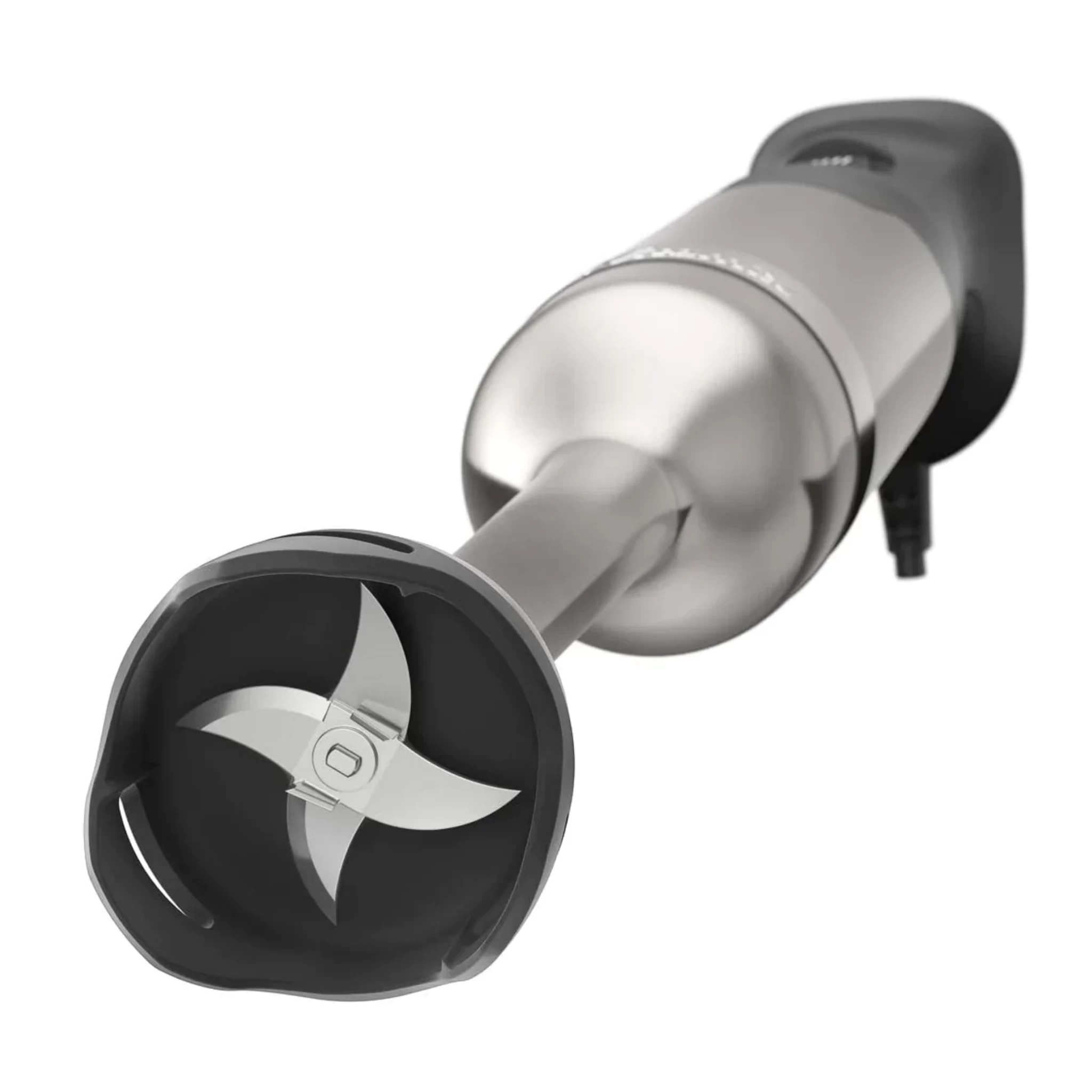 Vitamix brings 100 years of expertise to our first hand-held blender. The Immersion Blender combines precision design with powerful performance to bring you a truly hands-on blending experience. With an especially high powered motor, large stainless steel shaft and 4-pronged blending blade, this mixer will effortlessly blend smoothies, puree soup, mix batter, chop nuts, whip sauces, or even make baby food. Thanks to the 5 variable speed settings, you’ll be able to dial the precise intensity every single time for whatever you’re making that day.