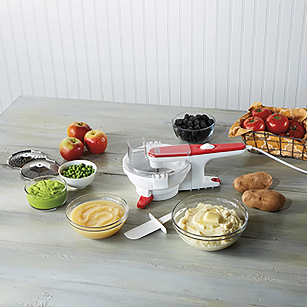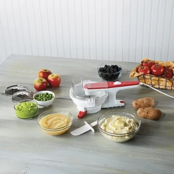 The Weston® Electric Food Mill prepares perfectly textured purees, sauces, jams, mashed potatoes, applesauce, and more while straining out the seeds and skin to save time and effort.