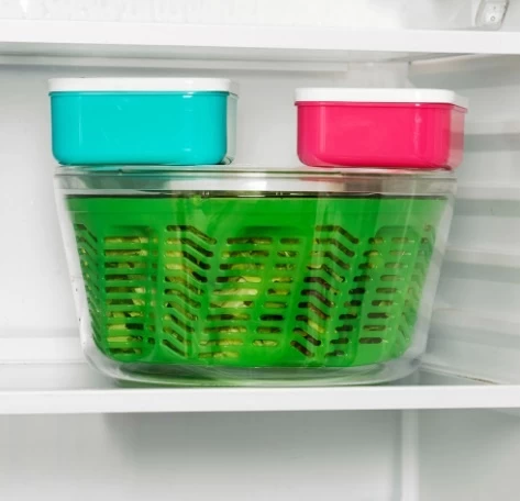 Easy to operate, this salad spinner uses a one-pull mechanism. Simply pull the ergonomic handle to get the basket spinning to remove excess water. You can also use the bowl for serving.